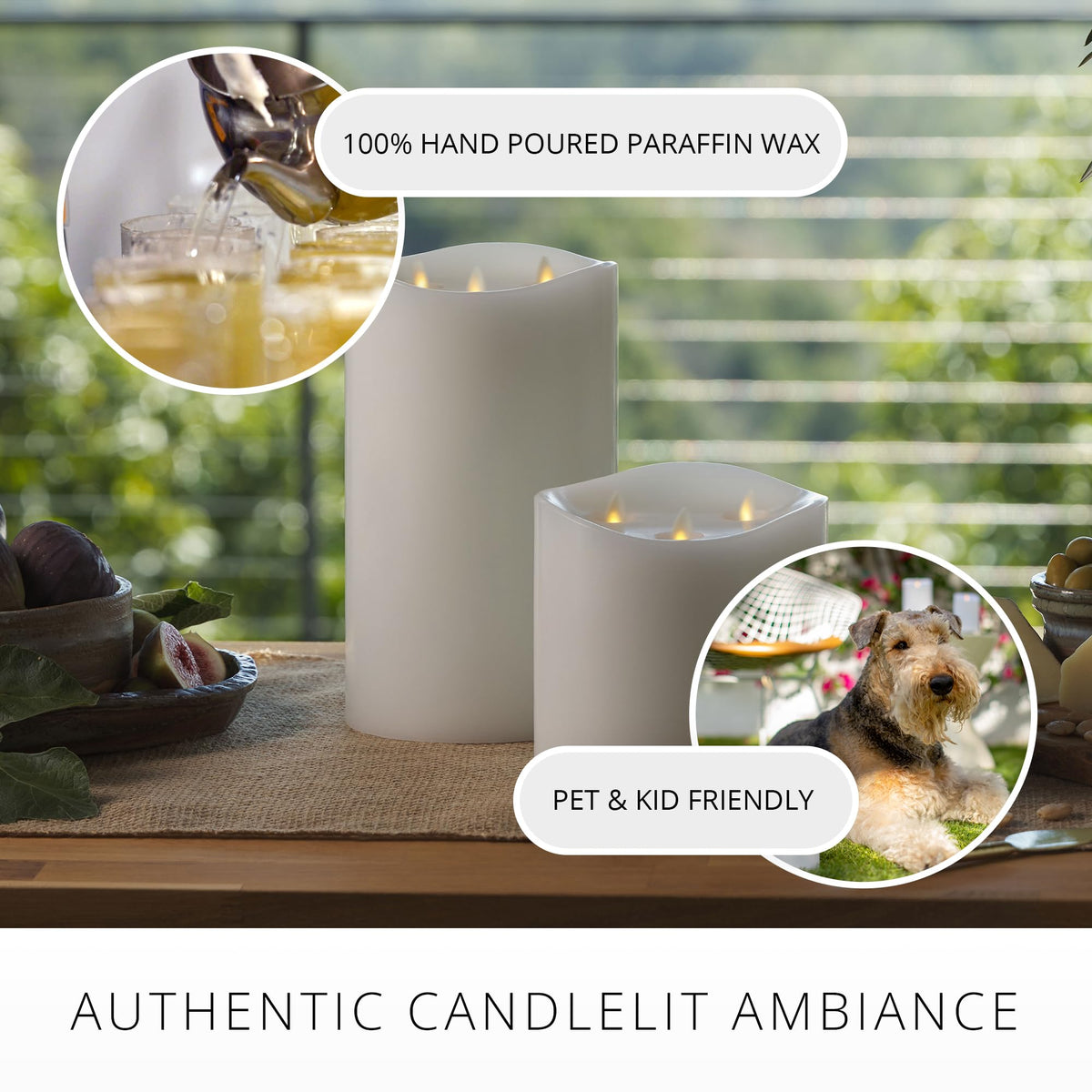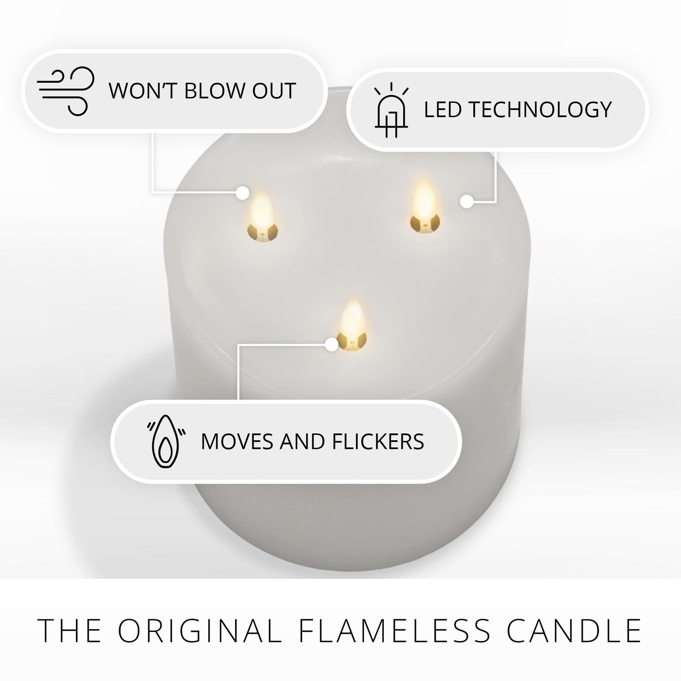 Luminara Tri Flame Flameless Led Candle, White 5.8'' X 5.7'', Moving Flame Real Wax Home Decor Battery Operated Emergency Light,