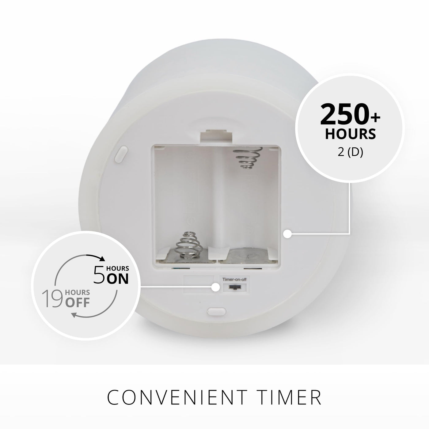 Q: Does the Luminara candle have a timer function?A: Yes, the Luminara Tri-Flame Flameless LED Candle features a timer function that allows it to light up for 5 hours and then automatically shut off for 19 hours. This convenient feature helps to save battery life and ensures the candle operates on a schedule.