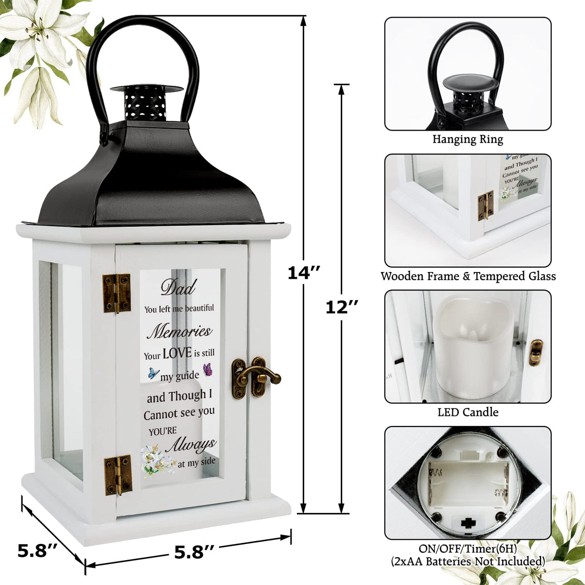 Q: What makes the Memorial Lantern a thoughtful gift for someone grieving the loss of a father?A: The Memorial Lantern is designed to provide comfort and hope to those grieving the loss of a loved one. Its flickering flameless candle mimics the presence of those we've lost, creating a warm atmosphere that helps remind us of happy memories. This unique gift goes beyond traditional sympathy gifts, making it a meaningful way to honor a father's love and legacy.