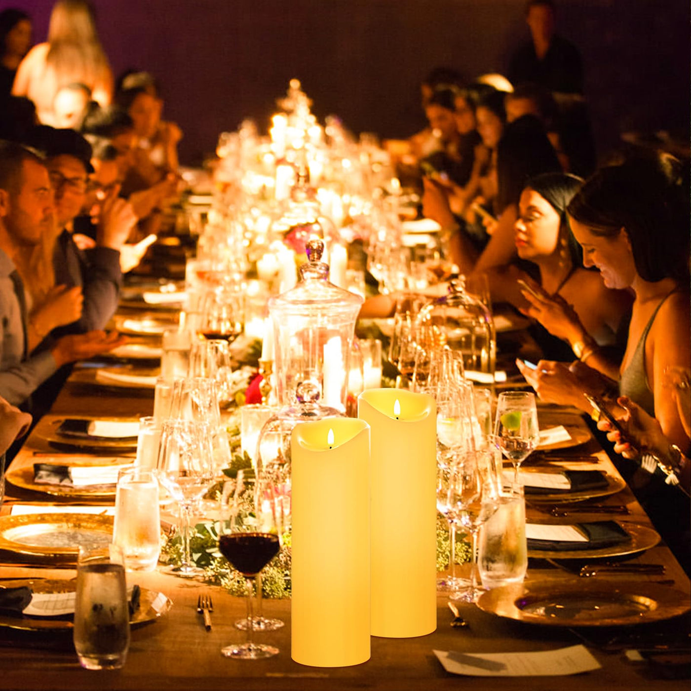 Q: Can these candles be used with lanterns?A: Absolutely! These extra-large flameless candles are designed to fit most indoor and outdoor lanterns, making them versatile for various settings such as home and garden weddings, outdoor parties, and festive decorations.