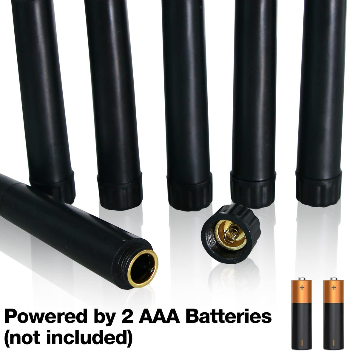 Q: How long do the Ni-JASW Black Flameless Taper Candles last on a single set of batteries?A: The Ni-JASW Black Flameless Taper Candles operate on 2 AAA batteries each, which are not included, and can last over 150 hours of use.