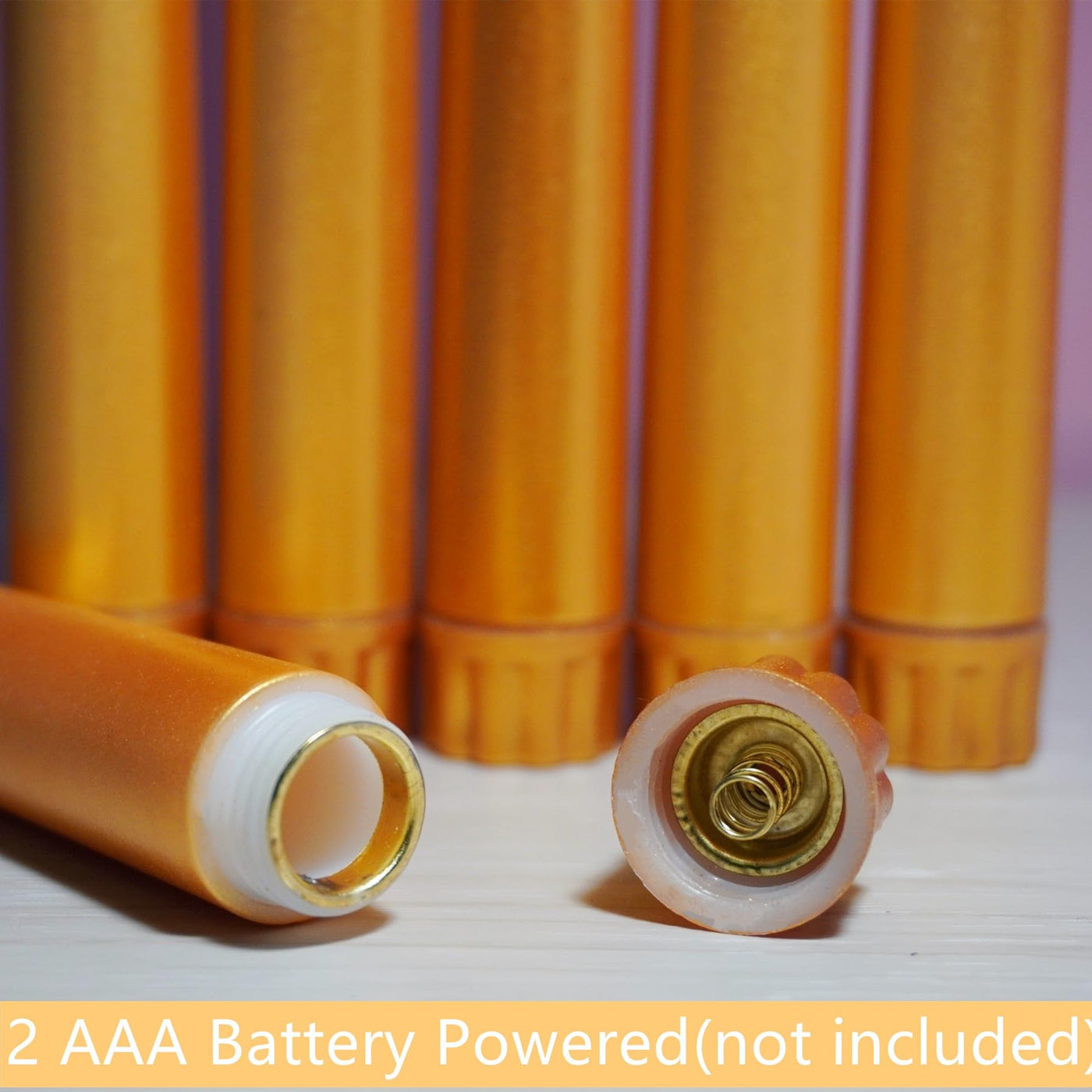 Q: What occasions are these flameless taper candles suitable for?A: The Ni-JASW flameless taper candles are perfect for a variety of occasions such as weddings, parties, home decorations, Halloween, Christmas, and other seasonal festivals. Their elegant gold design and flickering flame effect create a warm and inviting atmosphere for any event.