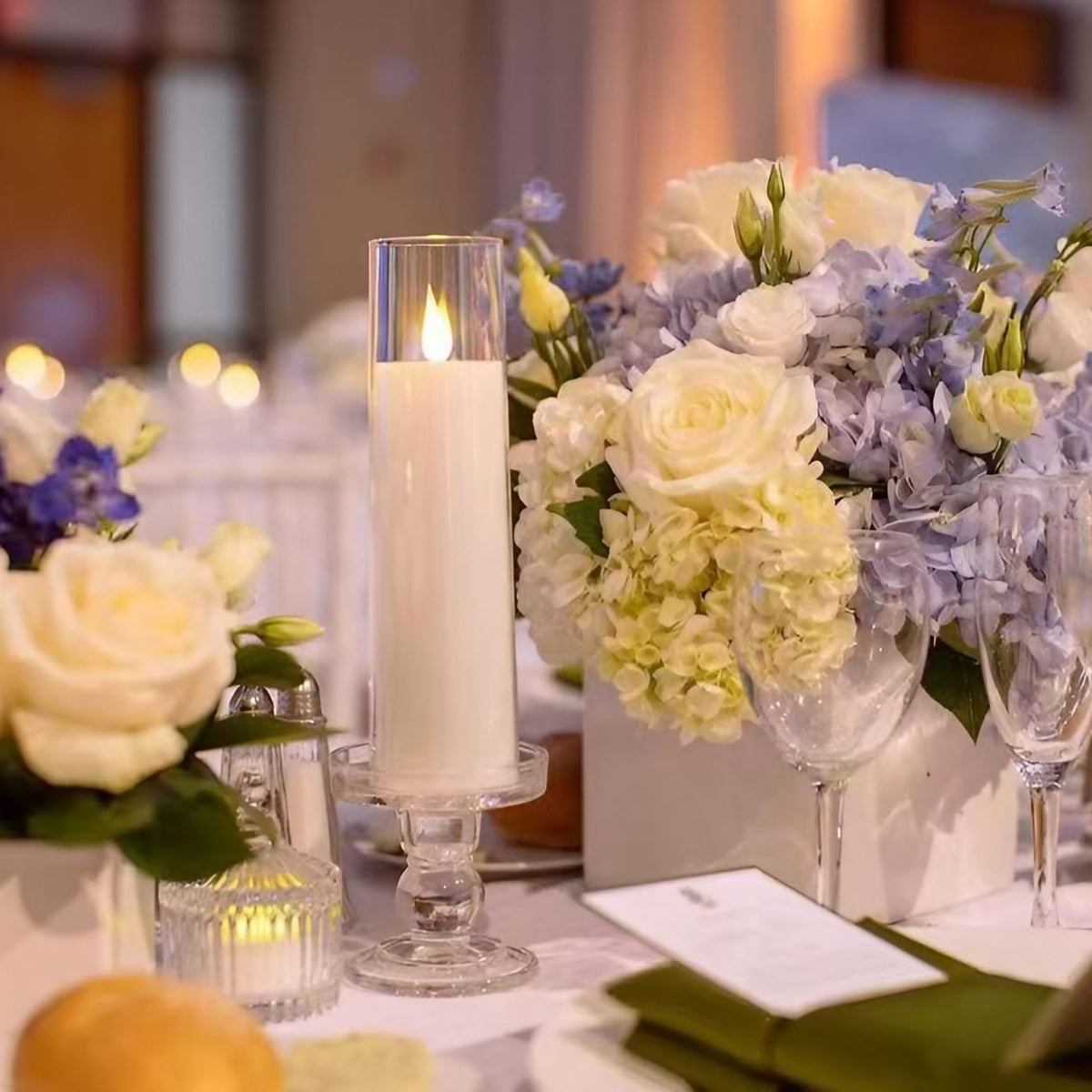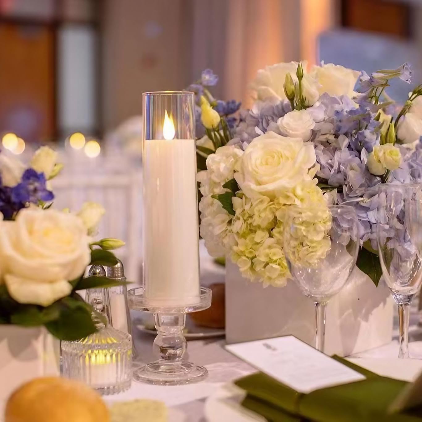 Q: What are the dimensions of the NICEME flameless candles?A: The NICEME flameless candles come in various heights of 5”, 5.5”, 6.3”, 7”, and 8”, all with a diameter of 2.16”, making them suitable for most candle holders.
