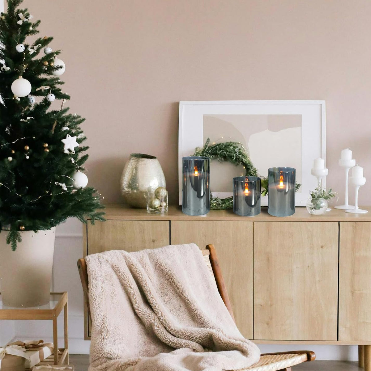 Niceme Grey Glass Flamelss Candles With Remote, Evanescing Radiance Candles Flickering Pillar Candles Battery Operated Real Wax