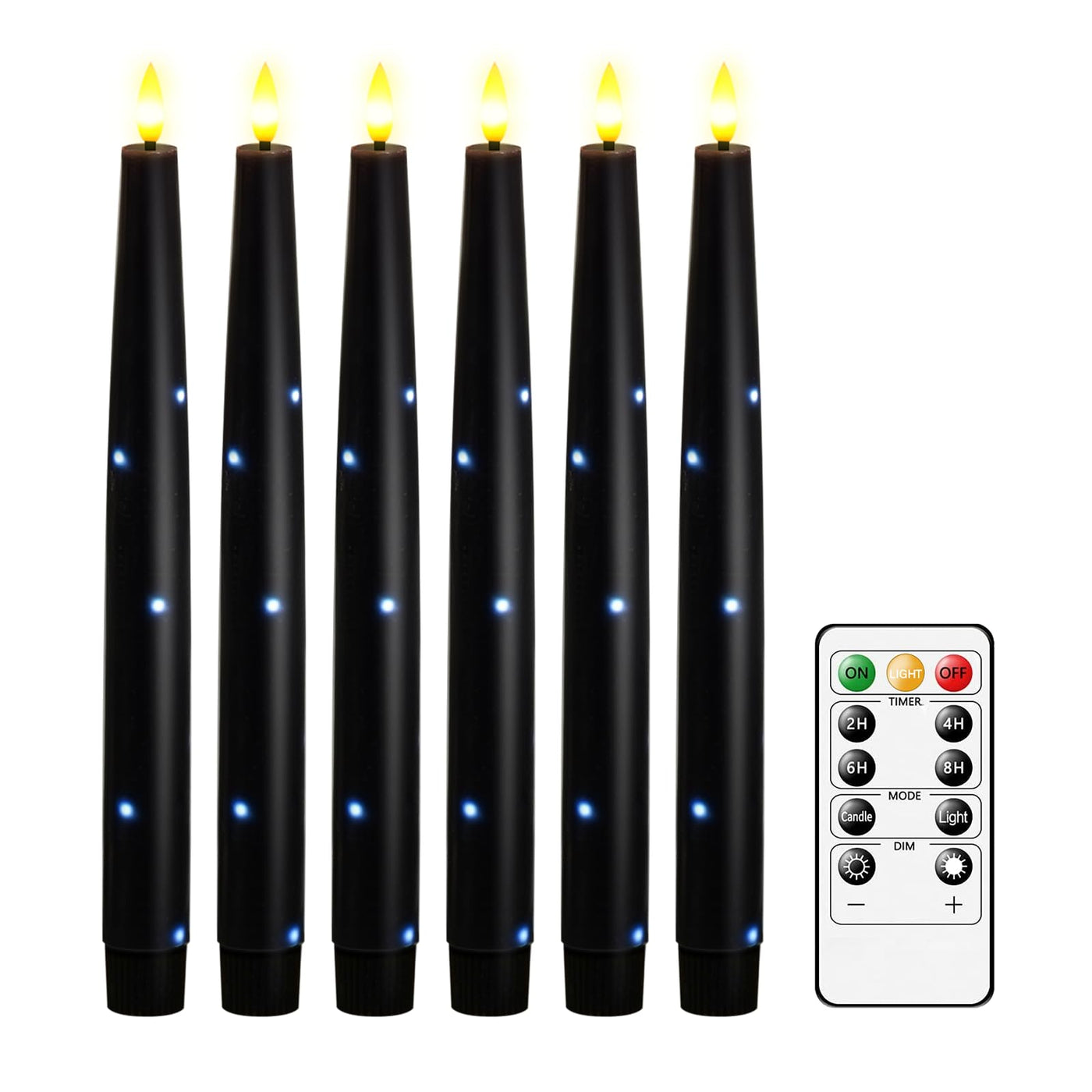 Nimiko Flameless Taper Candles With Star Lights, Remote Control, And Timer Control, Made Of Real Wax, Led Battery-Powered Candles Suitable For Home, Party, And Wedding Decorations 6-Pack Black
