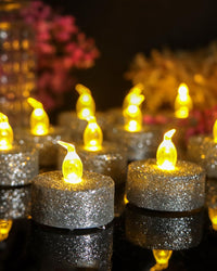 Oneihomm Silver Flameless Tealight Candles With Timer,Glitter Battery Operated Tea Lights For Event, Christmas Decorations,Anniv