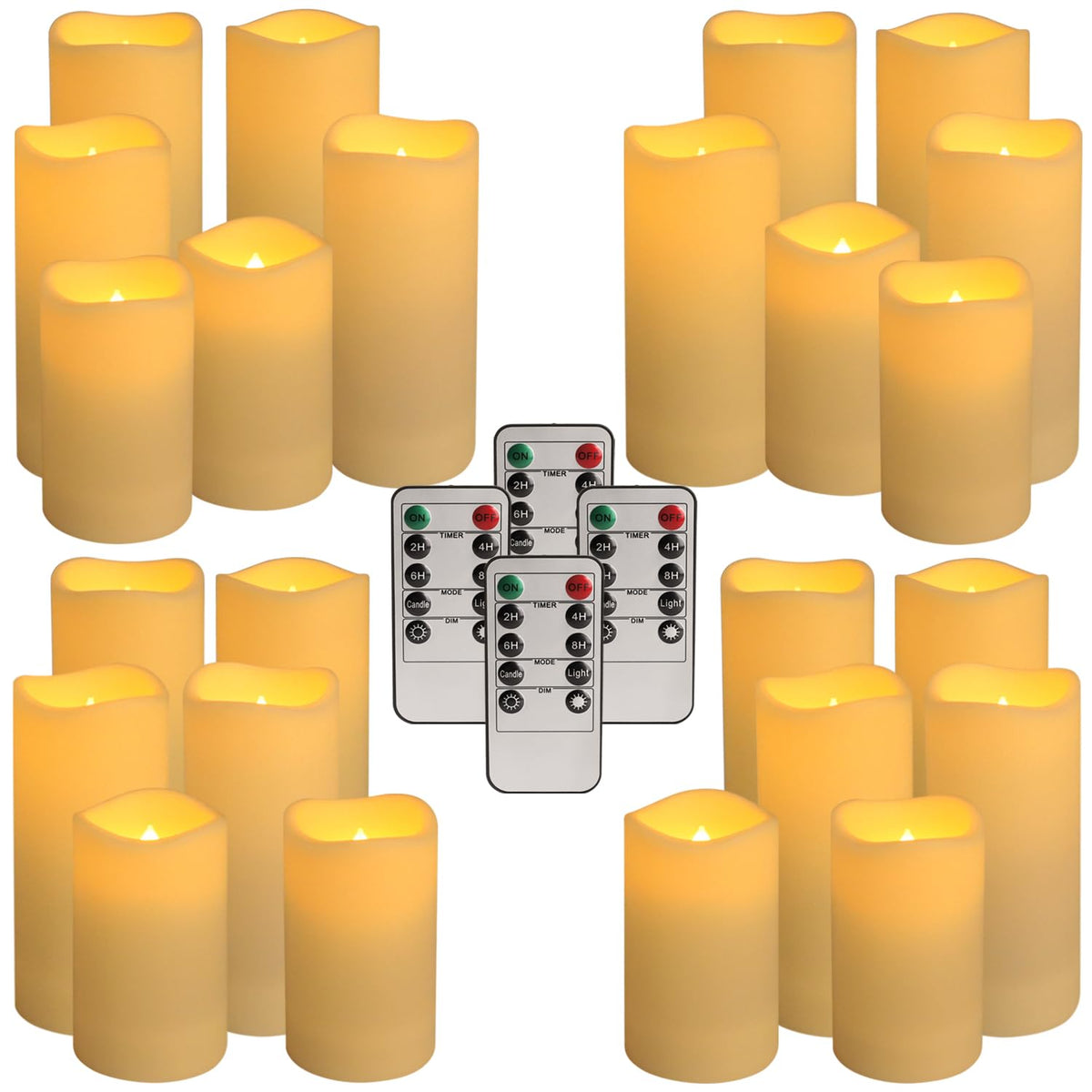 Pliadvbu Flameless Pillar Candles With 4 Remote Control And Timer,Realistic Waterproof Led Candles, Long Lasting, Pack Of 24 (H