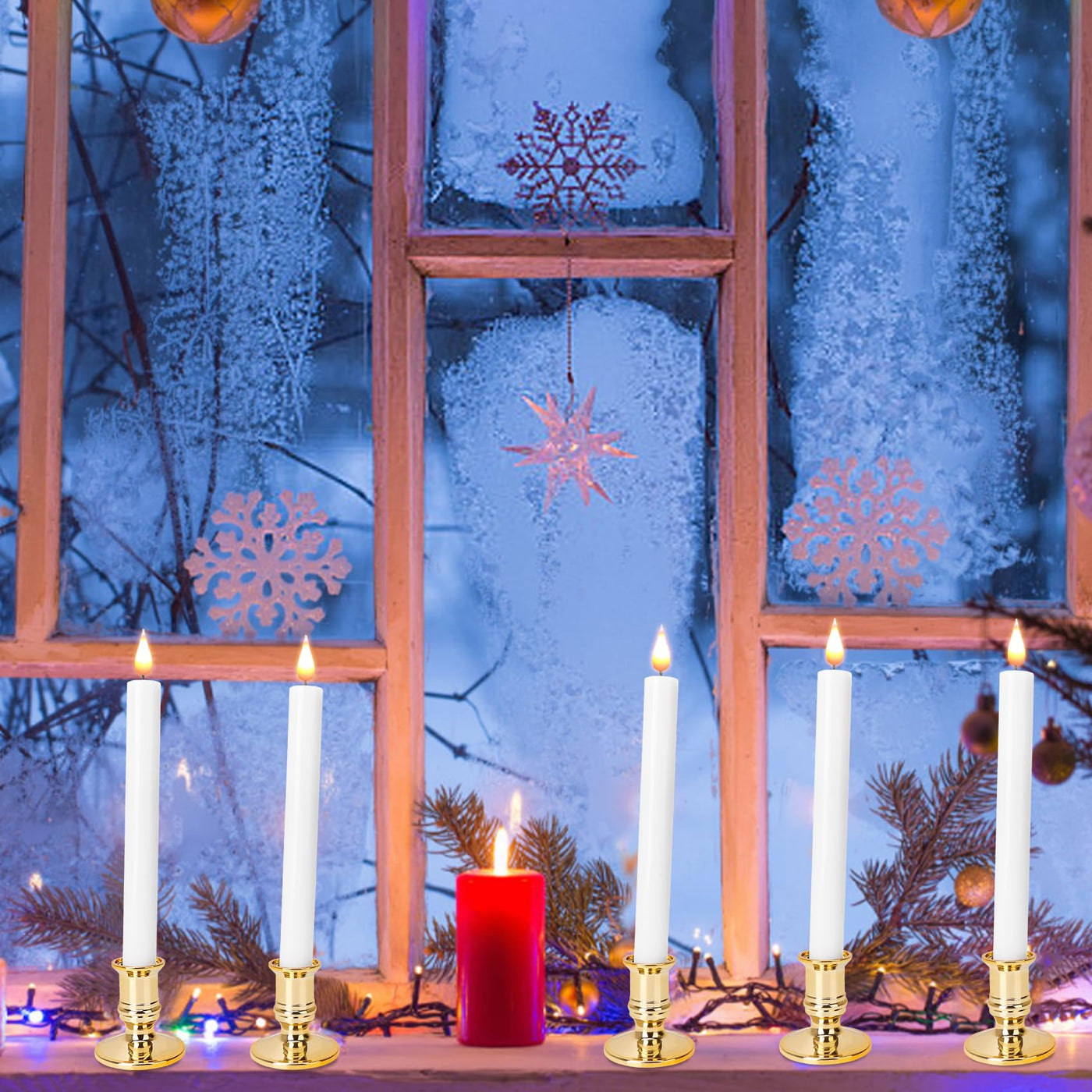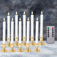 Poqcct Led Flameless Window Candles With Remote Timer 10 Pcs Battery Operated Flickering Taper Candle Lights With Removable Gold