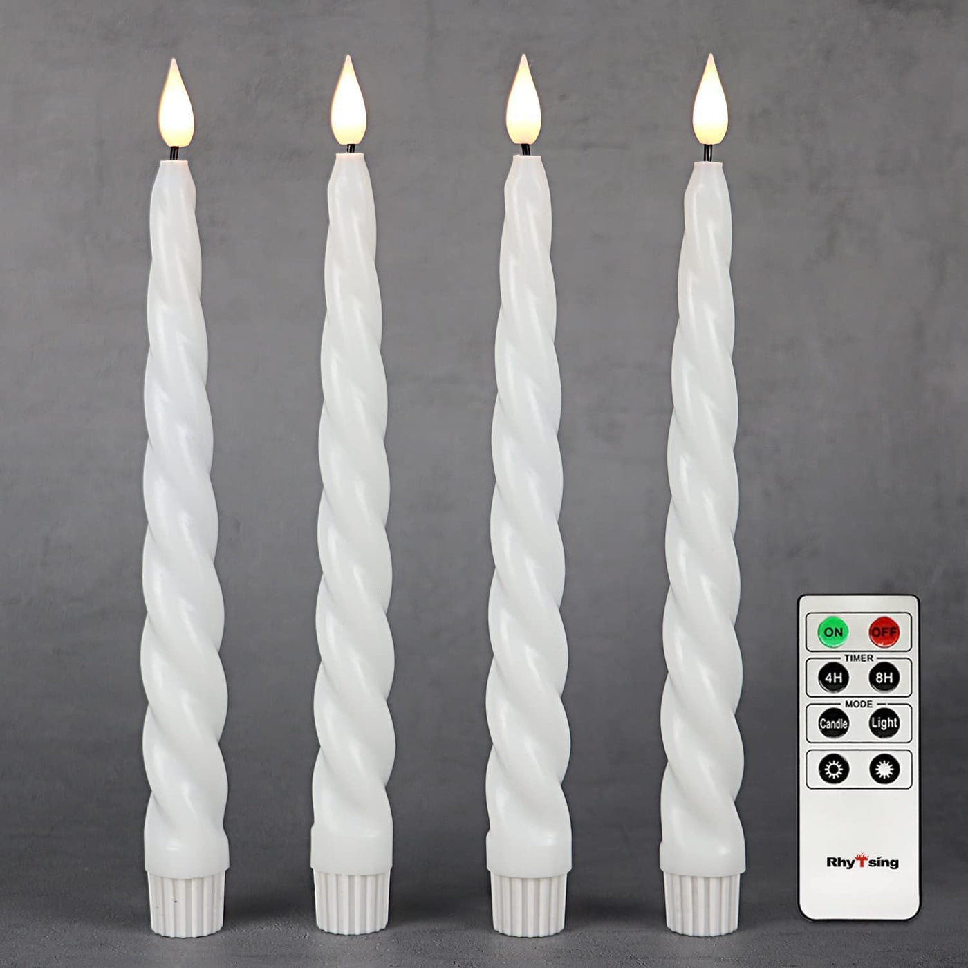Rhytsing 9.6 White Flameless Twisted Taper Candles With Timer, Battery Operated Spiral Candlesticks, Warm White Light, Remote &
