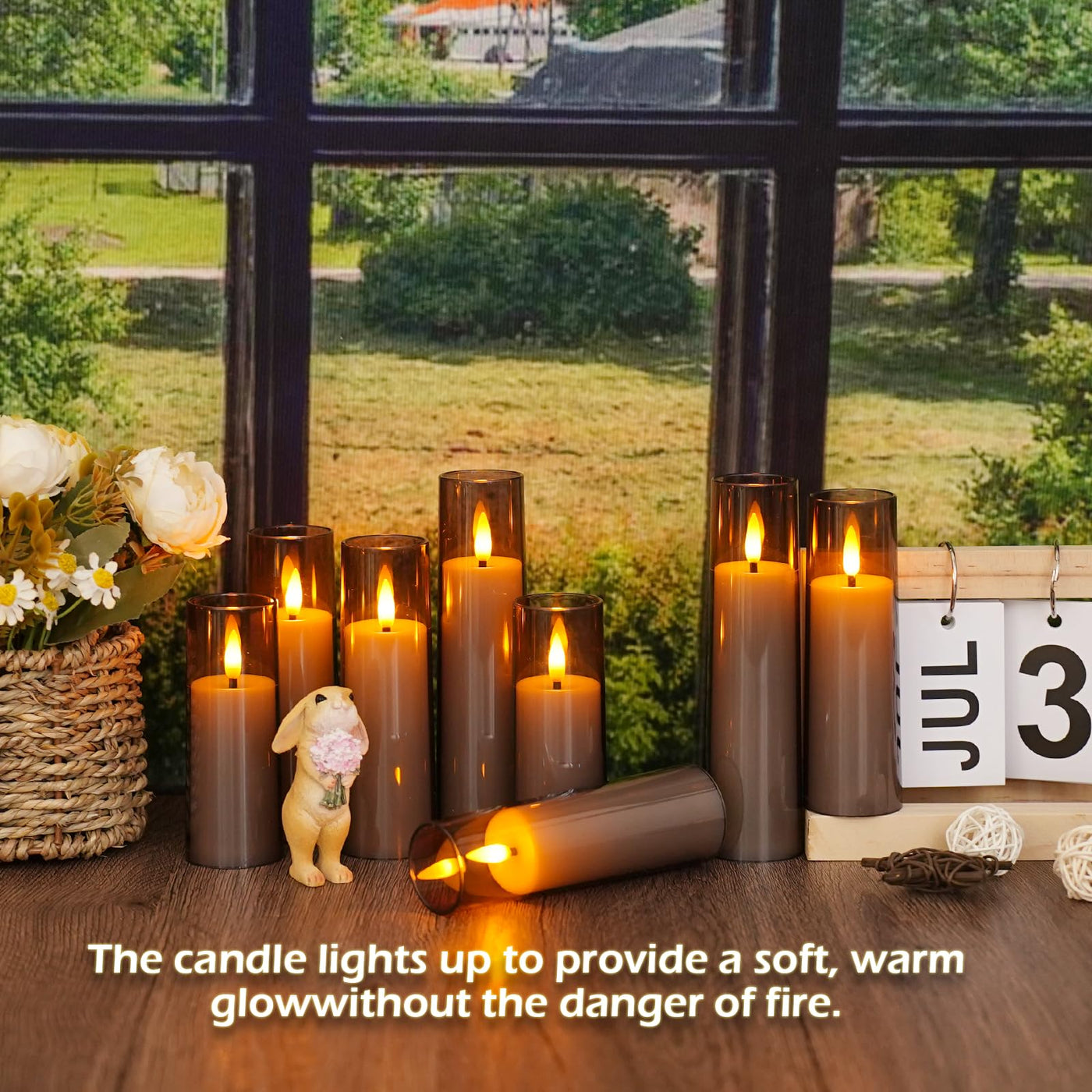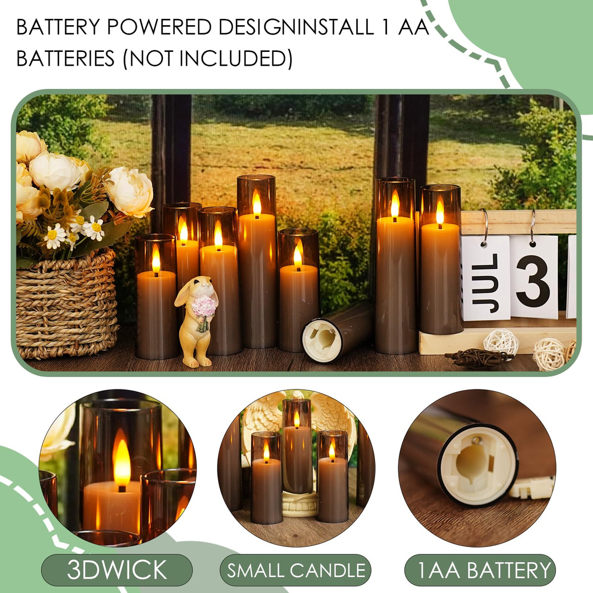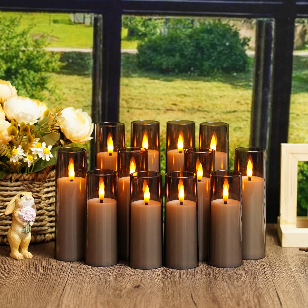Sasigeiaa Flickering Flameless Candles, Battery Operated Acrylic Led Pillar Candles With Remote Control And Timer,Pack Of 12,(D1.57 Xh 4'' 5'' 6'') For Holiday Decorations Home Decorations (Grey)
