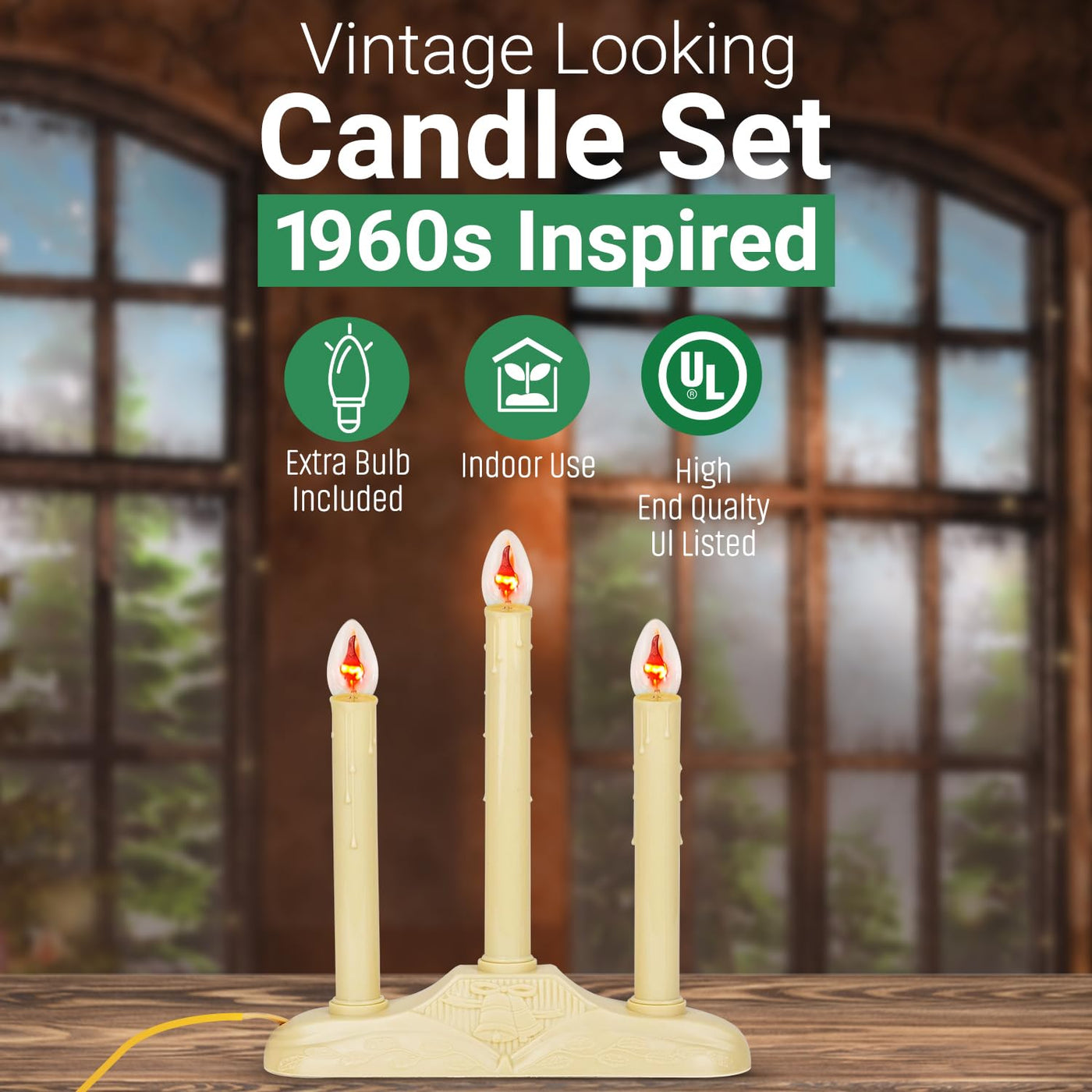 Tupkee Christmas Candolier Window Candles With Flickering Bulbs 3 Lights Indoor Flameless Electric Window Candles Candelab