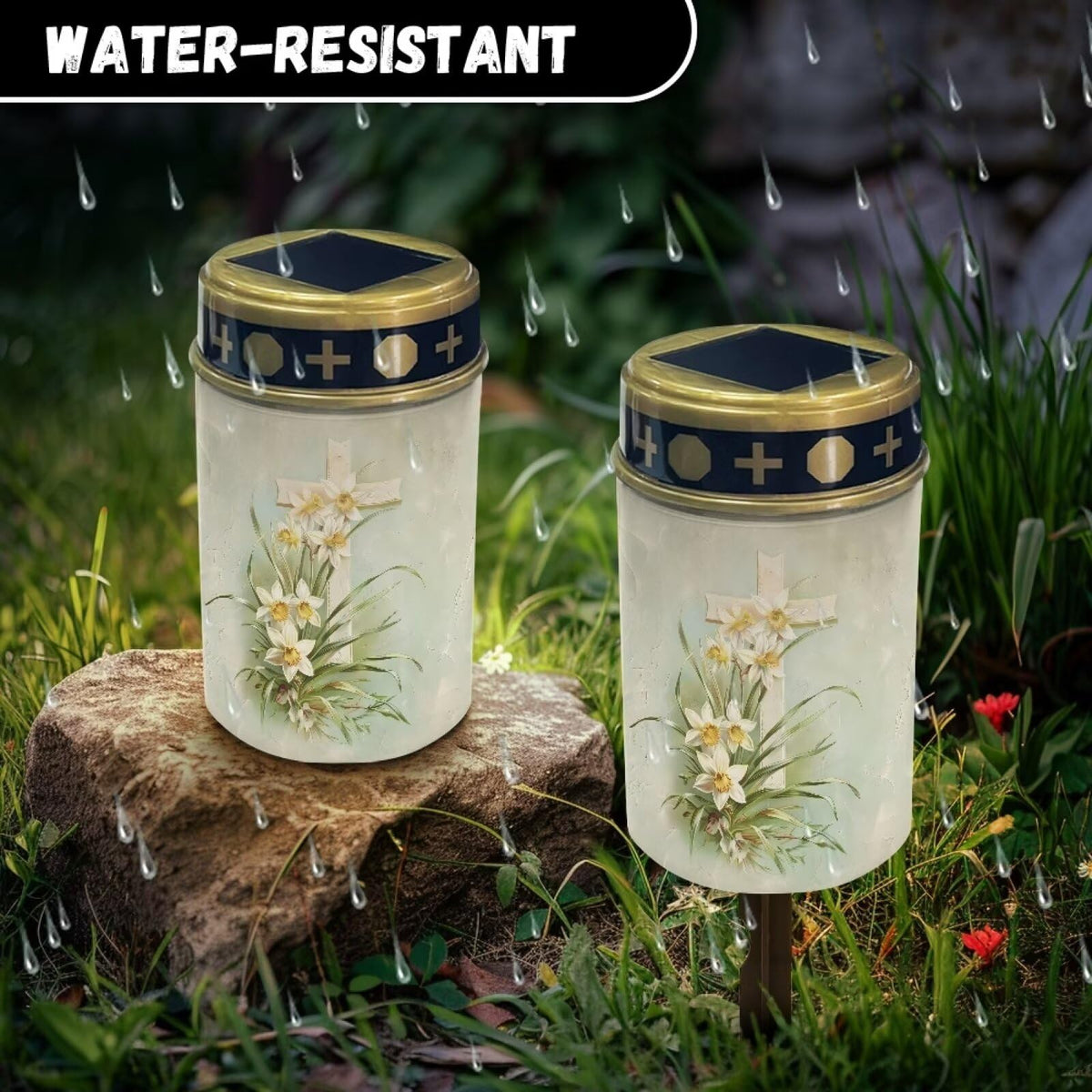 Uorisanigo Cross Floral Solar Grave Lights Flameless Solar Powered Light For Prayer, Waterproof Cemetery Decor Candle Lamp