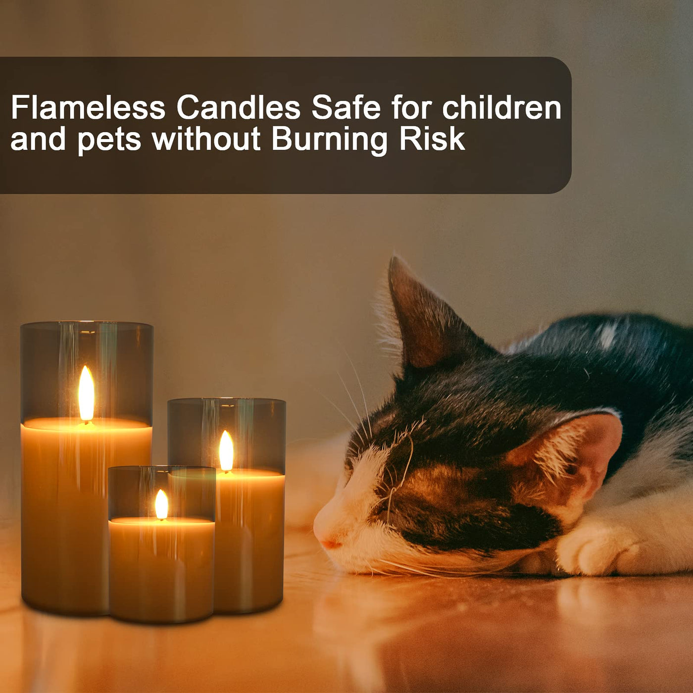 Rechargeable Led Flameless Candles Flickering With Timer & Remote Control, Built-In Battery Led Gray Glass Candles Gift Set, Set Of 3 Pillar Candles Of 4.1'' 5.1'' 6.1'' For Party Wedding Home Decoration