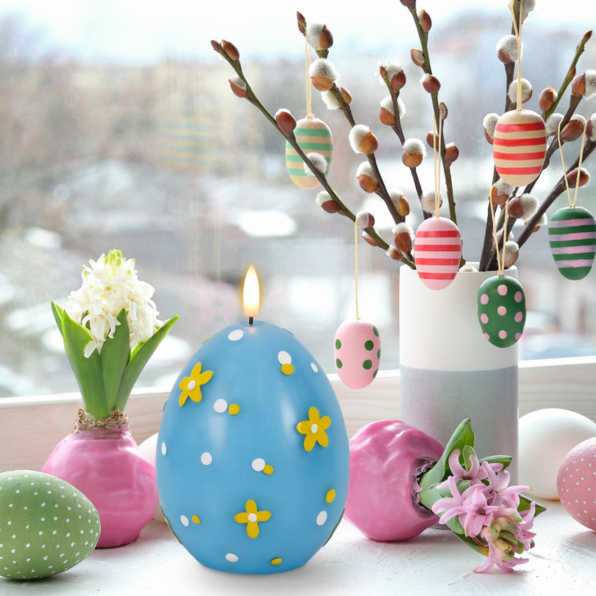 Q: Are these candles safe for use around children and pets?A: Yes, the Wondise Easter Egg Flameless Candles are designed to be safe for use around children and pets. Since they are flameless and battery-operated, there is no risk of fire, making them a great choice for family-friendly decorations.
