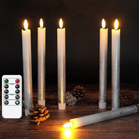 Candle Information: Material: Real Wax Color: Sliver Half Coating With Remote Light: Warm Light Diameter: 0.78'' Height: 9.64'' Flame Type: Flickering All Timer Candles Can Stand Separately, Also Fit For Mostly Candle Holders, Candlesticks, Candelabrum Widely Used As Wedding, Theme Party, Birthday, Restaurant, Dinner, Halloween, Thanksgiving, Christmas Home Window Table Decoration Candles Battery Powered: Each Flameless Taper Candle Requires 2 Aaa Batteries(Not Included) Allow 180 To 240 Hours Long Lasting Life, Depends On The Batteries Quality You Choose There Will Be Slight Battery Drain In Timer Mode Even If The Taper Flickering Candle Is Not Light, So Please Take Off The Batteries If Plan Not To Use For A Long Time Remote And Timer: 10-Key Remote Candles: On--Off--Timer--Flickering--Brightness Timer:2/4/6/8 Hour For Example, If You Set 6H Timer At 16:00, Then These Led Taper Candles Will Light 6 Hours And Automatically Turn Off At 22:00. And Will Automatically Turn On At 16:00 Next Day, Cycle Every 24 Hours Package Information: 6 X Sliver Half Coating Led Flickering Flameless Taper Candles(0.78'' X 9.64 ) 1 X 10-Key Remote 1 X User Manual Wondise 7/24 Online Service