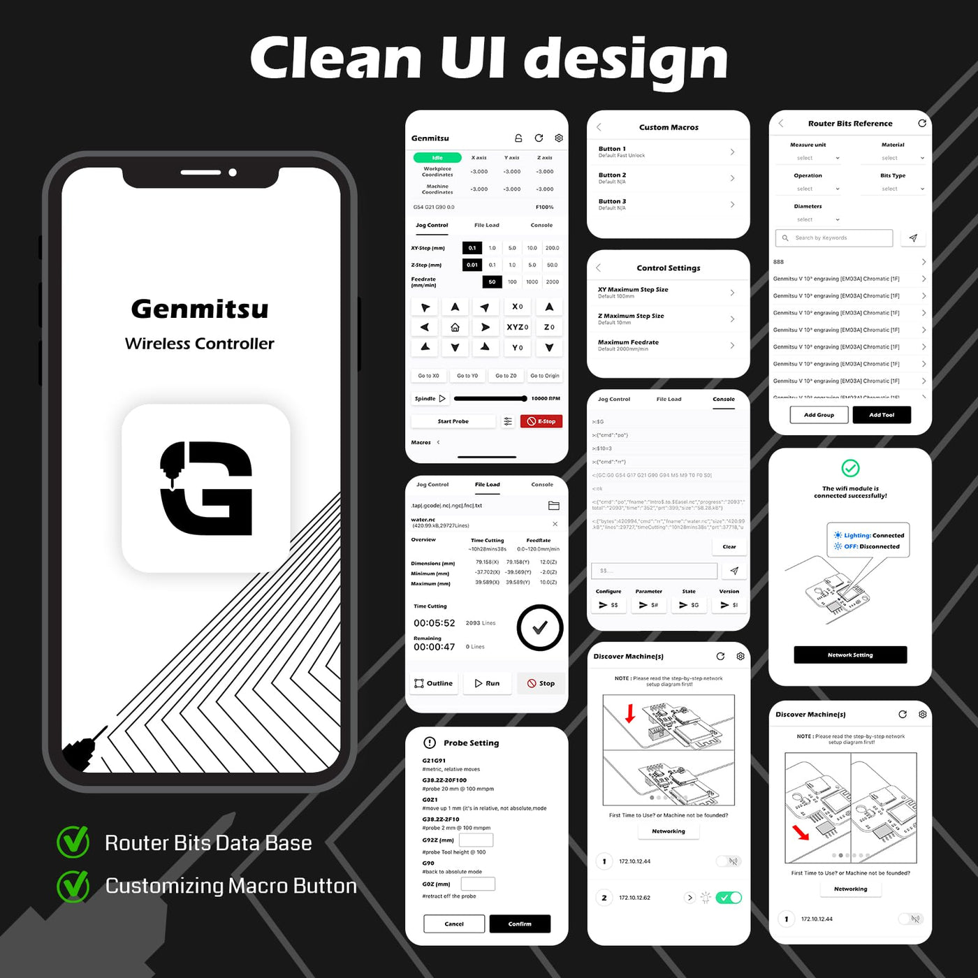Compatible Module: Genmitsu Proverxl 4030, Proverxl 4030 V2, Proverxl 6050. | User-Friendly Design App: Our Dedicated App, Tailored For Genmitsu Cnc Users, Offers A Clean And Intuitive Interface. Stay Tuned As We Continuously Improve And Add New Features To Enhance Your Cnc Experience. (Note: It Does Not Support 5Ghz+2.4Ghz Dual-Band With The Same Ssid Name. You Will Need To Use Different Ssid Names For Your 2.4Ghz And 5Ghz Networks. It Does Not Support Wi-Fi 6. It Is Compatible With Wi-Fi Standards Up To Wi-Fi 5 (802.11Ac)) | Effortless G-Code Transmission: With Our Wifi Module And App, Downloading And Sharing G-Code Files Has Never Been Easier. Access Online G-Code Resources Or Share Files With Friends, Saving Them Directly To Your Phone And Wirelessly Sending Them To Your Cnc Machine For Seamless Execution. Notice: Support 2.4G Wifi Only. | Monitor Multiple Cnc Machines Simultaneously: Keep Tabs On Your Workshop From The Comfort Of Your Living Room. Our App Allows You To Monitor Multiple Cnc Machines, Providing Real-Time Updates On Their Working Status. Easily Check Progress Without Leaving Your Seat. | Enhanced Operation Experience: Take Control Of Your Cnc Machine Remotely From Your Phone Or Tablet, Providing A Larger Screen For A Better Operating Experience. Unlock New Creative Possibilities With The Convenience And Flexibility Of Wireless Control.