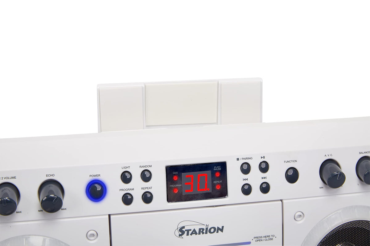 Starion Ks303W B Portable Bluetooth/Cd+G Karaoke Machine White L Built In Stereo Speakers L Detachable Tablet Holder L Multi C