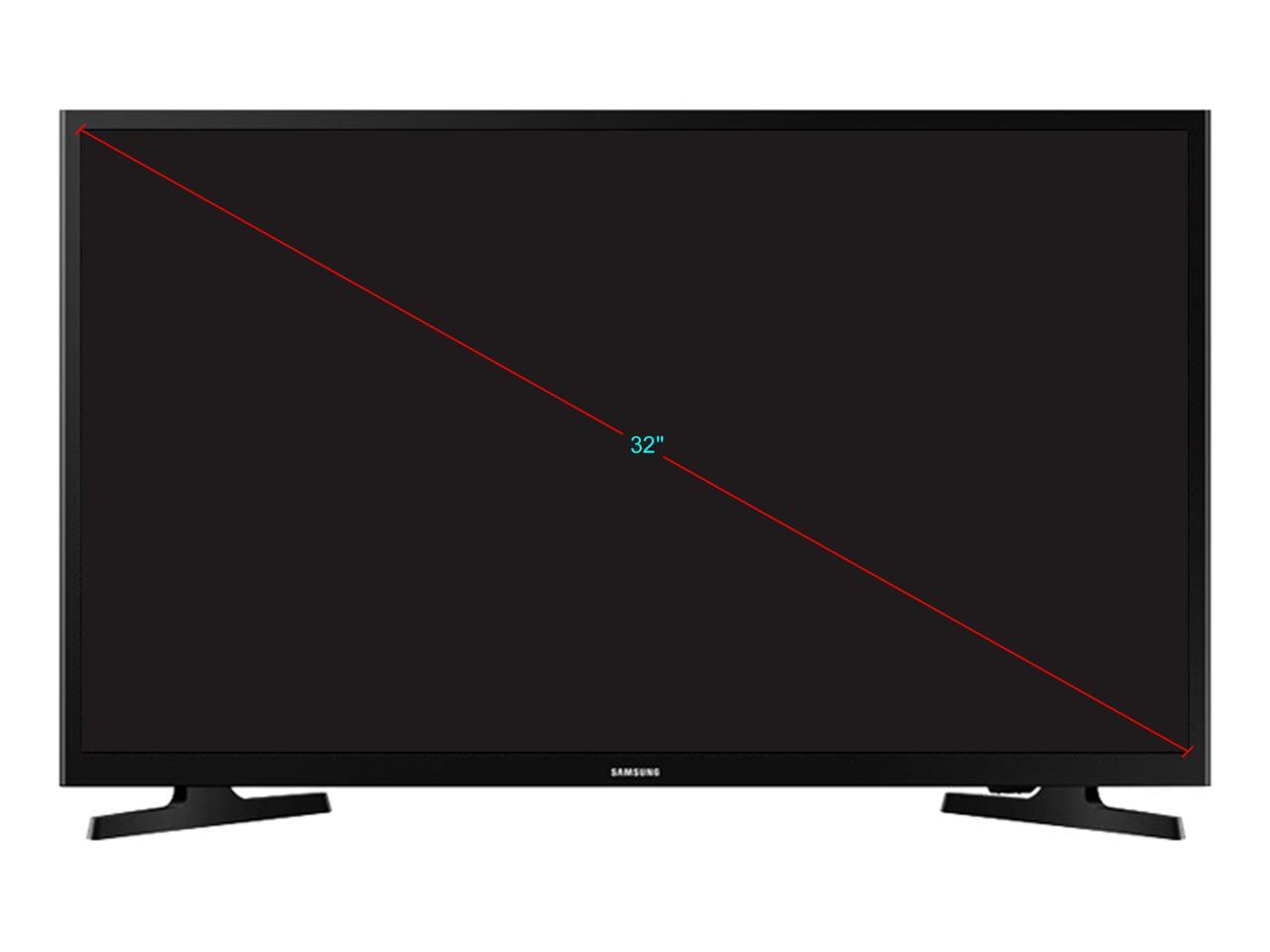 Q: What are the dimensions of the SAMSUNG 32-inch TV with and without the stand?A: Without the stand, the TV dimensions are 28.9" W x 17.3" H x 3.1" D. With the stand, the dimensions are 28.9" W x 18.2" H x 6.4" D.