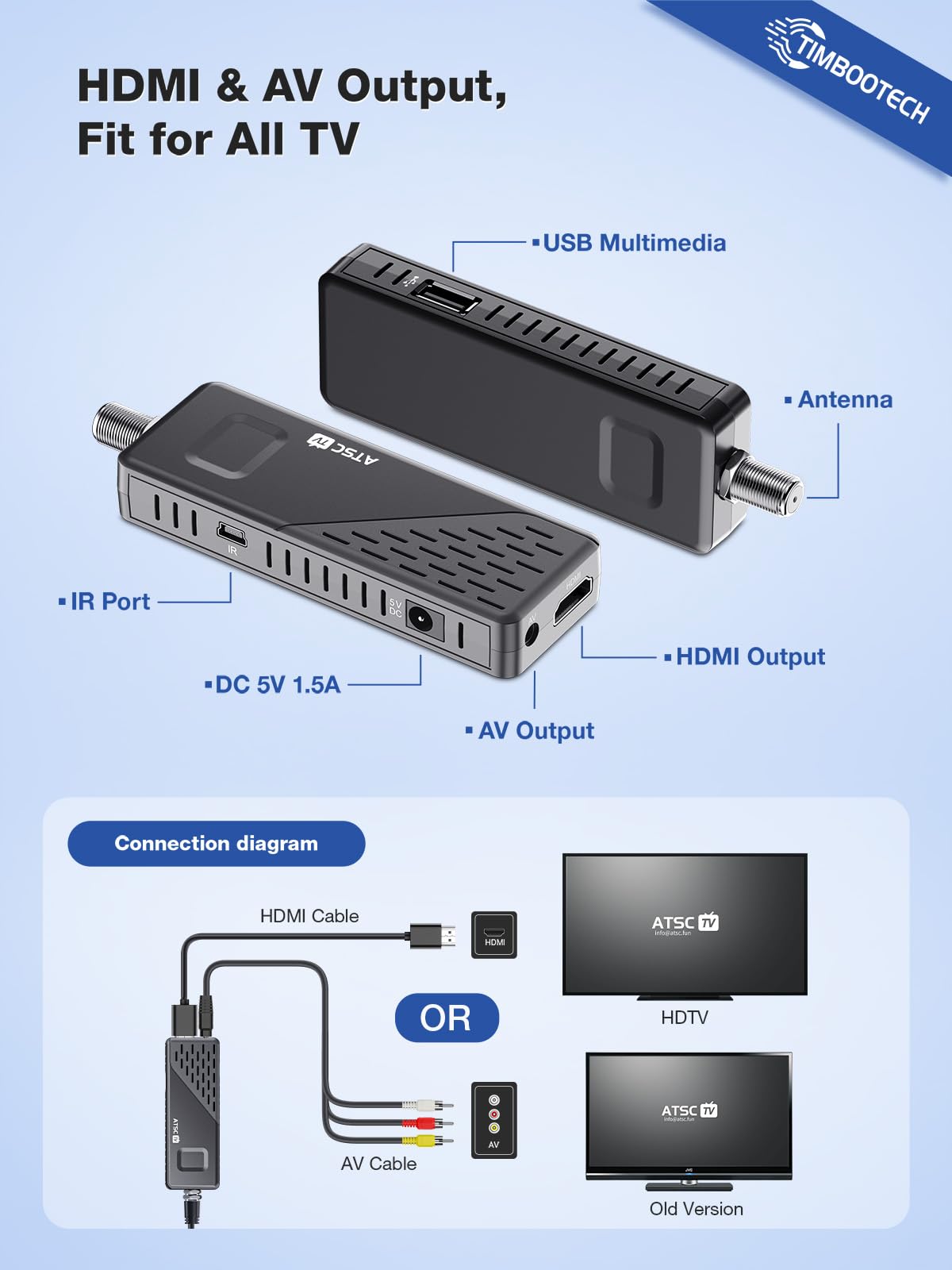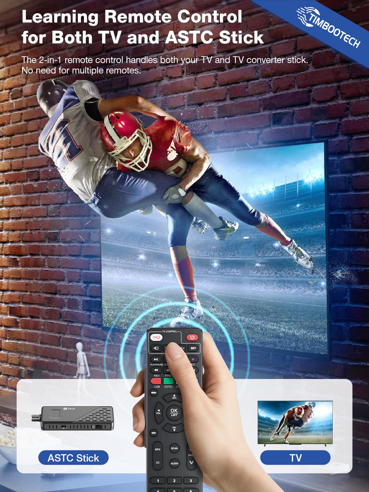 Timbootech Digital Converter Box For Tv, Play, Record & Pause Atsc Tv Tuner Stick, Support Usb Multimedia & Hard Drive, 1080P Hd Hdmi & Av Output, Timer Setting, Epg, 2-In-1 Remote, Fit For All Tvs