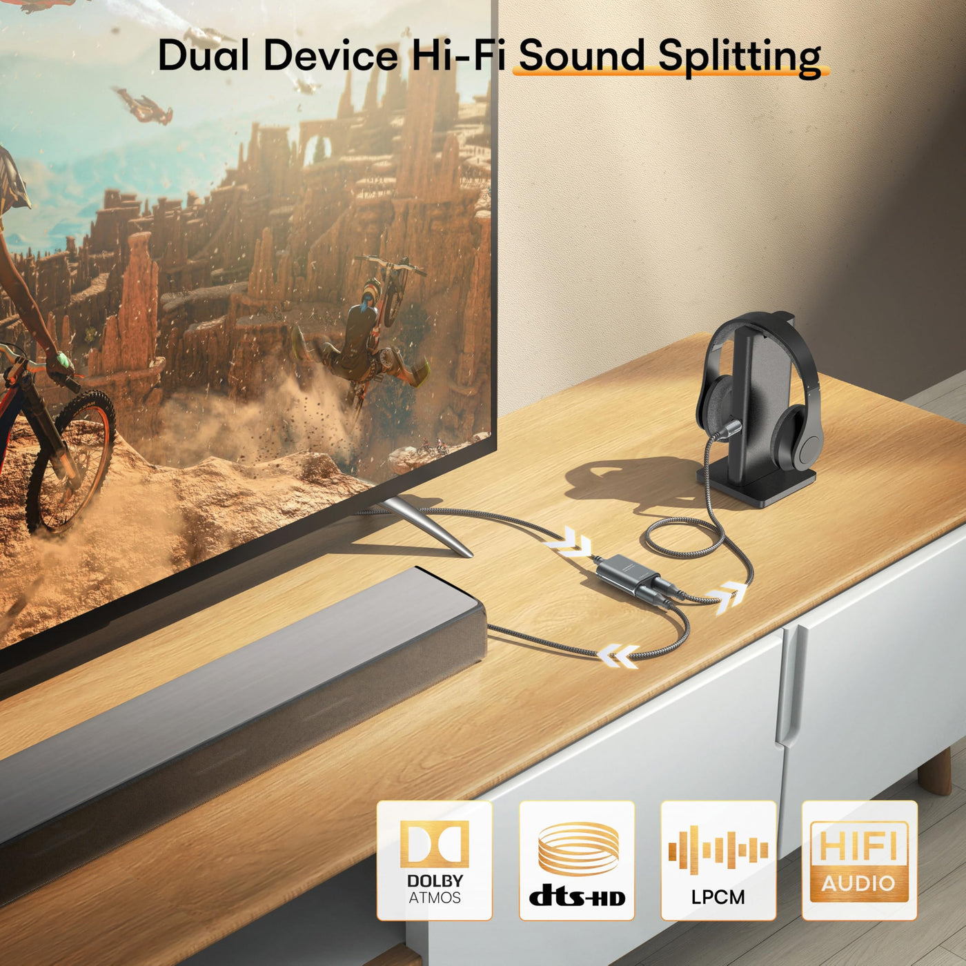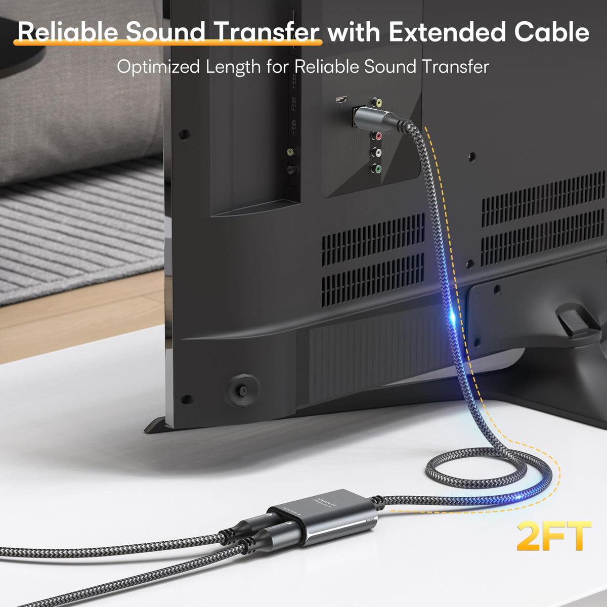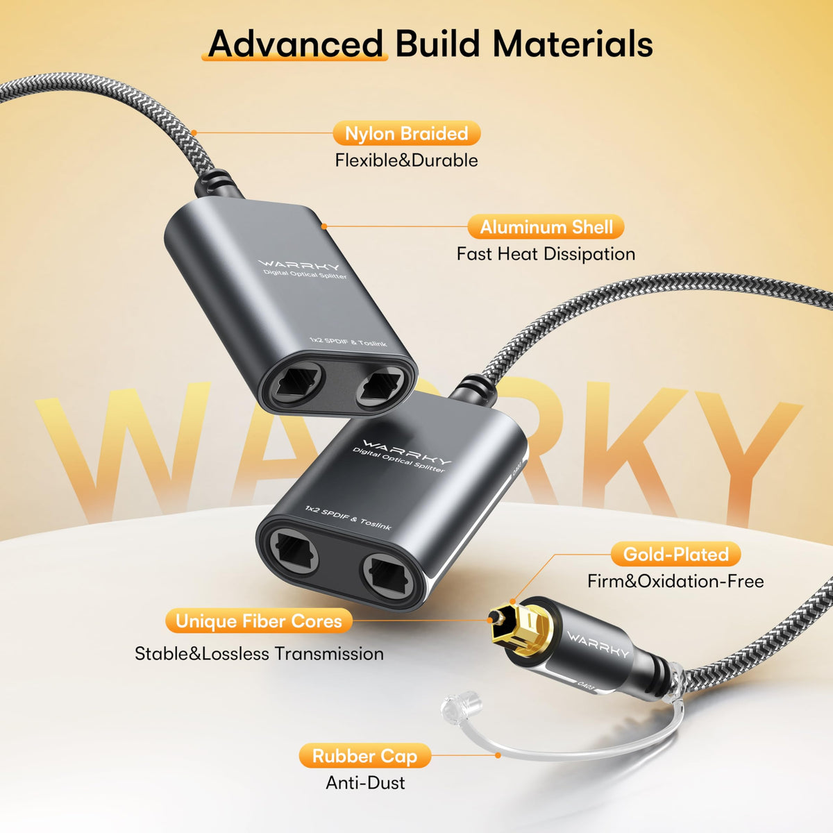 Warrky Optical Splitter, 1 In 2 Out Optical Splitter 2Ft [Aluminum Shell, Gold Plated] Toslink Splitter For Lpcm 2.0, Dolby, Dts