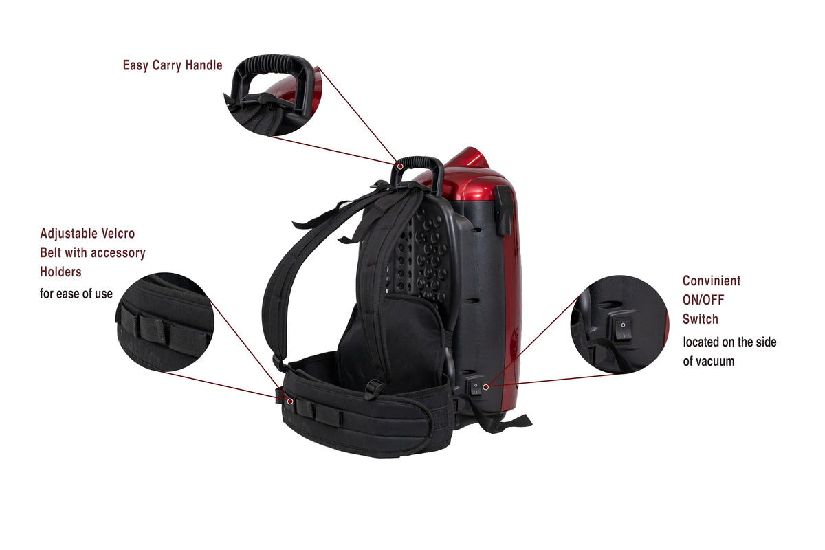 Introducing The Jet Red Hepa Backpack Vacuum, The Ultimate Cleaning Companion For Residential And Commercial Use. This Lightweight And Powerful Vacuum Features A 1,400-Watt Motor With 106 Cfm Suction Power, Ensuring Thorough Cleaning Of Dust, Dirt, And Pet Hair. Its Low-Profile Backpack Design Weighs Only 10 Pounds, Providing Comfortable And Easy Maneuverability. The Vacuum Includes A Variety Of Multi-Surface Tools For Carpets, Hard Surfaces, Upholstery, And Hard-To-Reach Areas. With A 4-Stage Filtration System, Including A Hepa Bag, It Effectively Captures Allergens And Maintains A Cleaner Environment. The Large Hose Opening Reduces Clogs For Optimal Cleaning Performance. Equipped With A 30-Foot Hardwired Power Cord, It Offers Ample Reach And Eliminates Cord Length Limitations. Upgrade Your Cleaning Routine With The Jet Red Hepa Backpack Vacuum And Enjoy Effortless, Efficient, And Versatile Cleaning Performance.