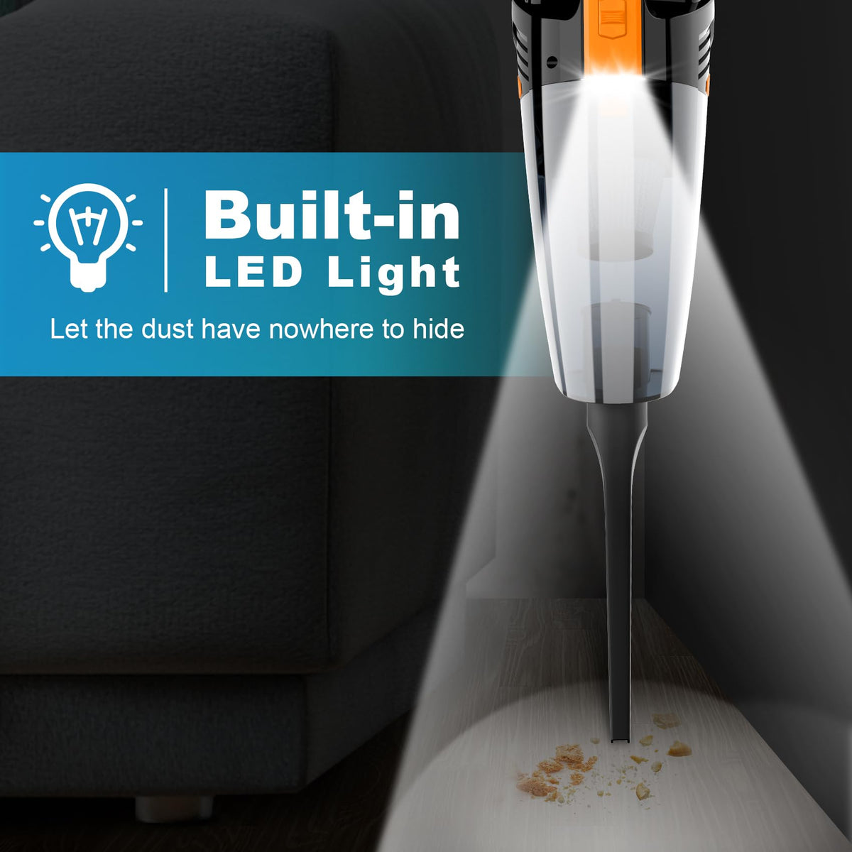 Cordless Car Vacuum Handheld Vacuum Cleaner With Led Light, Lightweight High Power Hand Vacuum, Hand Held Vacuum Cleaner For Car