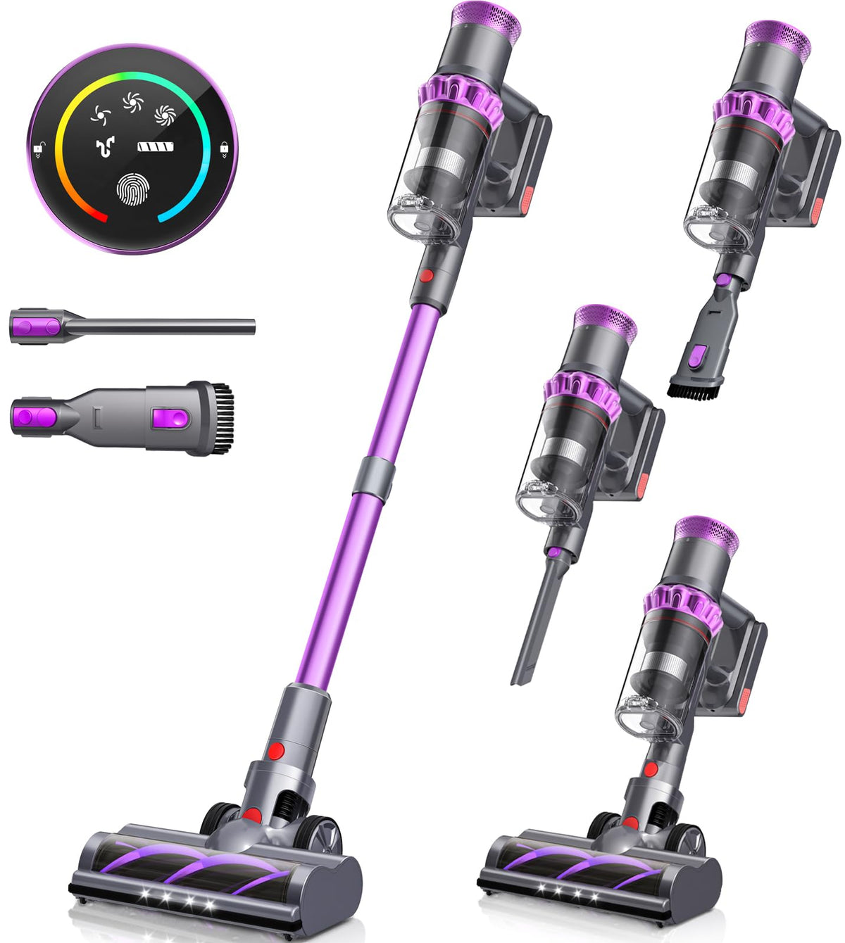 Cordless Vacuum Cleaner, 550W 45Kpa Vacuum Cleaners For Home, Stick Vacuum With Touch Screen, Up To 50 Min, Self-Standing, Lightweight, Rechargeable Cordless Vacuum For Hardwood Floor, Carpet, Pet Hair, Bvc-V11 Vacuum(Purple)