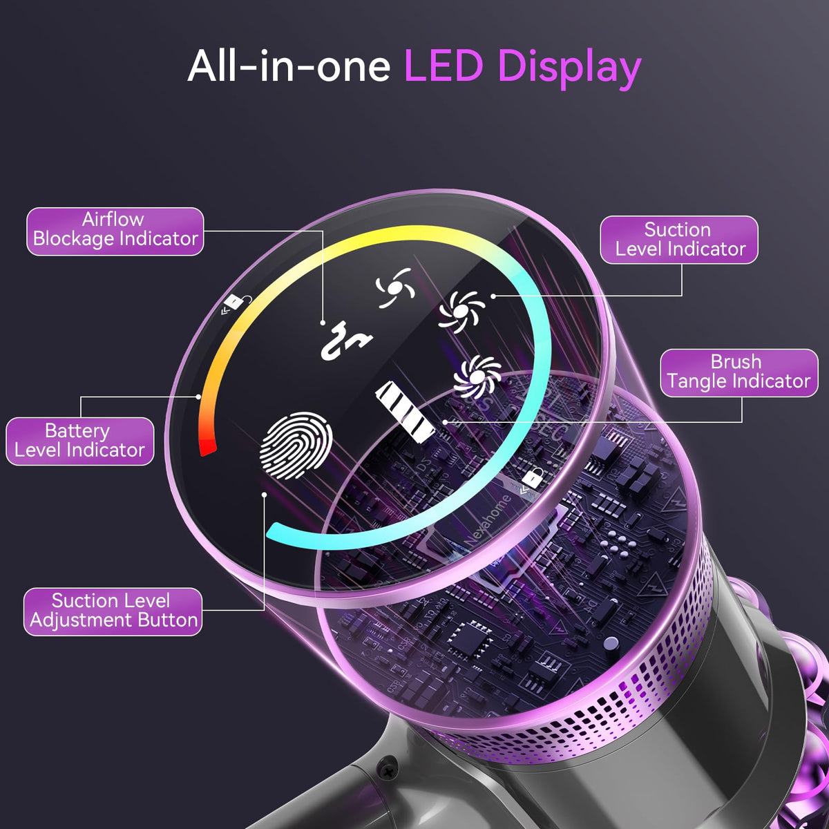 Cordless Vacuum Cleaner, 550W 45Kpa Vacuum Cleaners For Home, Stick Vacuum With Touch Screen, Up To 50 Min, Self Standing, Light