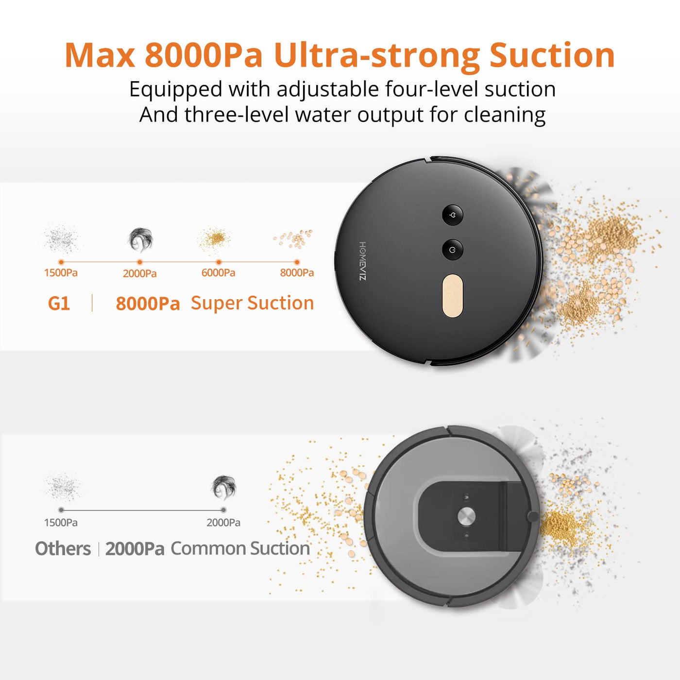 G1 Robot Vacuum And Mop Combo, 8000Pa Adjustable Suction Robot Vacuum Cleaner, 3D Obstacle Avoidance, Wifi/App/Alexa, Self Charg