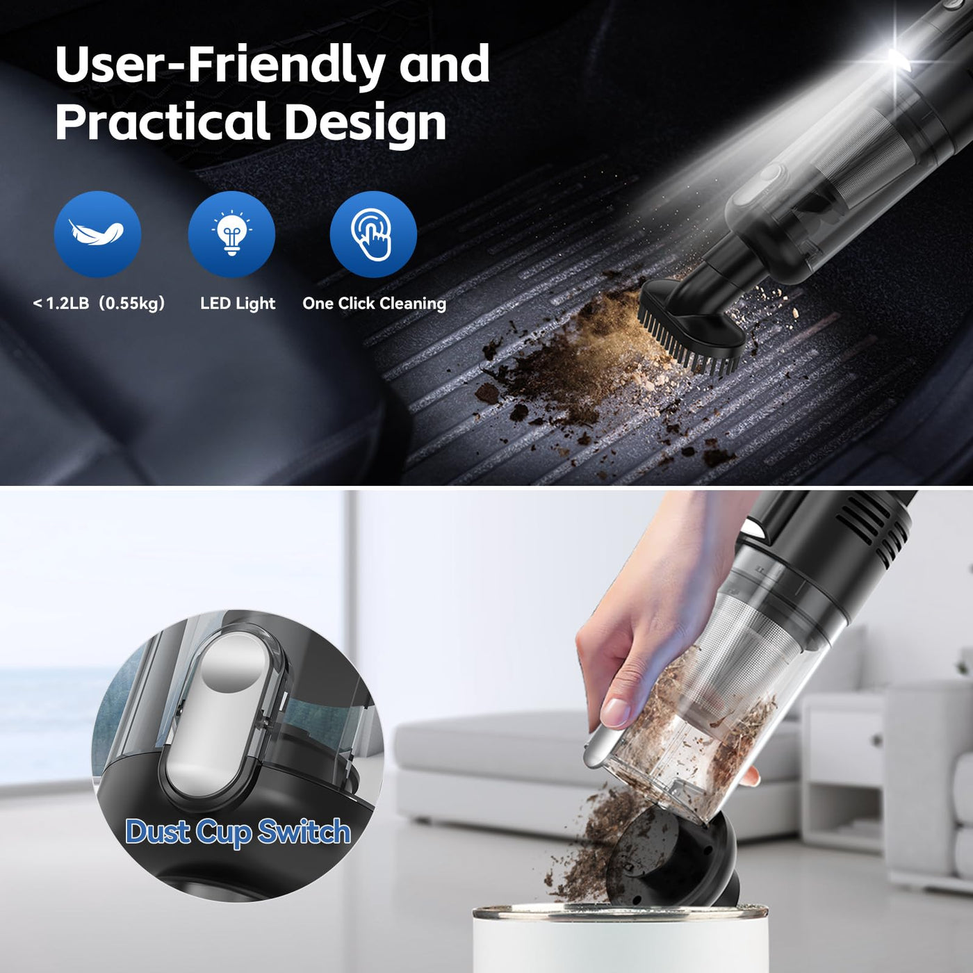 Handheld Car Vacuum Cleaner Cordless: 9500Pa Powerful Suction Portable Lightweight Hand Held Vacuum Large Capacity Battery Las