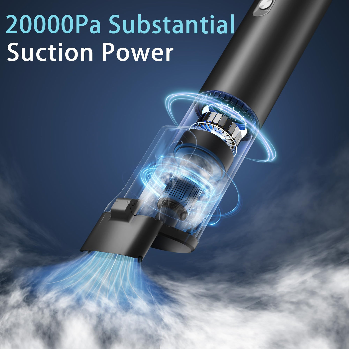 Q: What is the suction power of the Hobetter Car Vacuum?A: The Hobetter Car Vacuum features a powerful suction capability of 20000Pa, making it highly effective for picking up fine particles, dust, and debris from your vehicle.