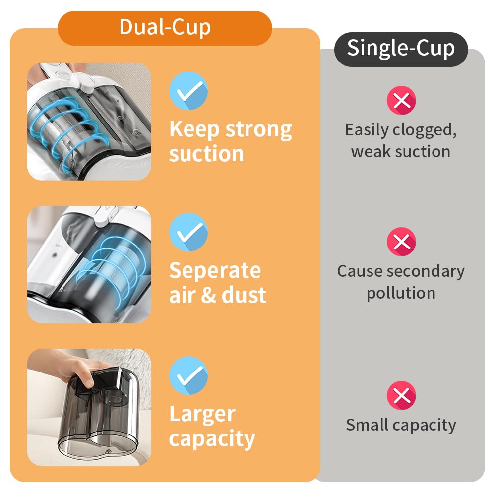 Laymi Mattress Vacuum Cleaner, 450W Powerful Handheld Bed Vacuum With High Beating Roller Brush, True Hepa Filter, Xl Dual Large