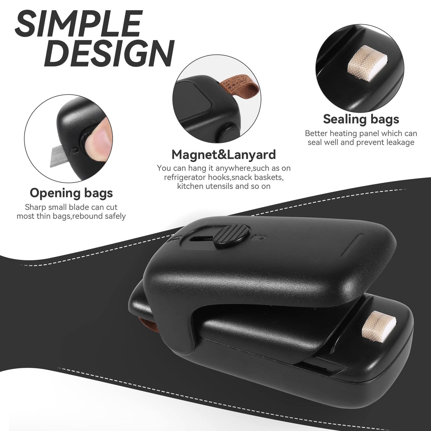 Q: Is the Mini Bag Sealer portable and easy to carry?A: Absolutely! The Mini Bag Sealer features a compact design that fits easily in your bag, making it perfect for travel, shopping, or outdoor activities. It also includes a lanyard for convenient hanging and a magnet for easy storage on your refrigerator.
