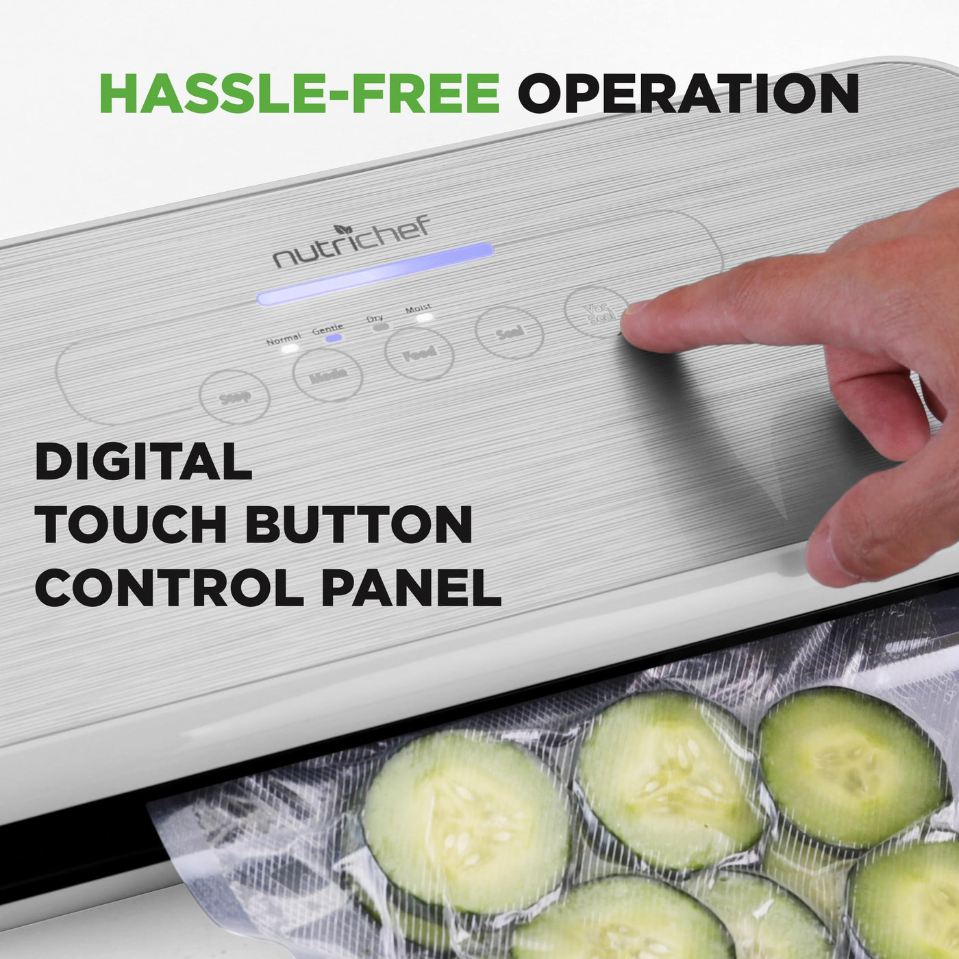 Preserves Food: The Power Suction Removes All The Air From The Vacuum Bags For Safe Sealed Flat Packing That Keeps Food Fresh. This Vacuum Sealer Is The Perfect Solution To Extend Shelf Life Of Any Vegetable, Fish, And Meat For Up To 2-3 Years Long | Food Settings: This Vacuum-Sealer Saves Leftover Product Or Meal. It Features Dry And Moist Hand Held Food Settings To Ensure Zip And Wrap Tight Of Your Bulk Food And Is Properly Airtight For The Best Household Sealing Storage System Results | Ez Operation: The Nutrichef Food Sealer System Is Prime Compared To Other Basic Food Savers As It Is Fully Automatic And It Features A Simple Electric Plug In Design W/ Control Center And Led Indicator Lights Made Visible For Quick And Easy Use | Flexible Accessory Functions: This Handheld Device Is Indeed A Food Saver Machine At Your Home. It Gives You Extra And Instant Ways To Preserve And Pack Your Food, Vacuum Air And Seal, Manual Sealer, Canister, Gentle, Moist And Wet Packaging | With Starter Kit Set: Includes Reusable, Washable And Microwavable Safe 7.8