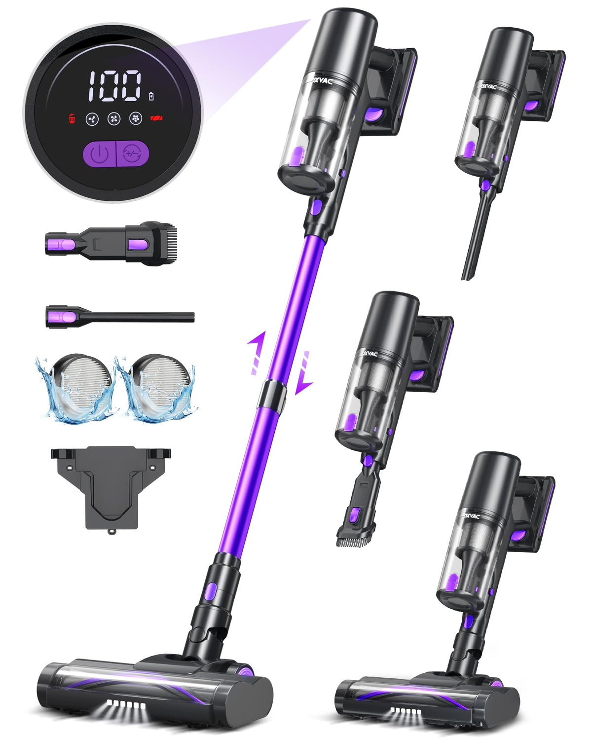 Oxvac Cordless Vacuum Cleaner Is Equipped With 550W Brushless Motor, 3 Suction Modes To Choose From, Maximum Suction Power Can Reach 45Kpa In High Suction Mode, And The Running Time Can Reach Up To 50 Minutes In Low Suction Mode. It Is A Lightweight Handheld Stick Cordless Vacuum Cleaner Suitable For Household Pet Hair, Carpets And Hard Floors.