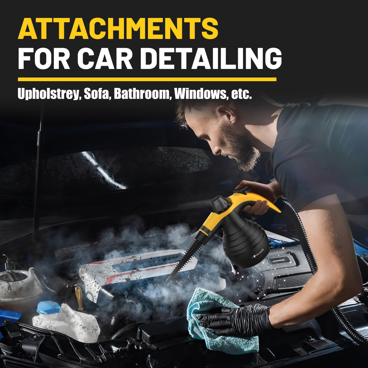 Pressurized Handheld Steam Cleaner- Chemical-Free & Effortless Cleaning For Your Homekeep Your Home Spotless With Minimal Effort Using Our Handheld Steam Cleaner. Engineered For All Types Of Floors And Surfaces, This Compact Steamer Easily Handles Messes Without Relying On Harsh Chemicals. Just Add Tap Water And Let The Steam Work Its Magic-An Ideal Solution For Those Who Prefer A Natural Cleanwhy Choose Our Handheld Steam Cleaner?Powerful Steam Technology For Efficient Cleaningour Steamer Heats Up Quickly, Giving You Fast, Efficient Results. It Tackles Grease, Stains, And More-Perfect For Upholstery, Floors, Kitchens, And Bathrooms.Chemical-Free Cleaning: Say Goodbye To Toxic Cleaning Products! Our Steamer Uses Only Water For Heat Treatment, Providing A Chemical-Free And Safe Way To Clean.Versatile Use: Ideal For Cleaning Soft Furnishings, Upholstery, Mattresses, And More-Especially Those Items That Cant Be Laundered Or Cleaned With Regular Detergents.Compact &Amp; Convenient: Lightweight, Portable, And Easy To Store, This Steamer Includes A Range Of Useful Attachments, Making It Perfect For A Variety Of Tasks Around The House.Transforms Into Clothes Steamer: The Included Steaming Cloth Cover Lets You Easily Convert Your Steam Cleaner Into A Clothes Steamer, Making It Even More Versatile.Accessories Included: 1X Straight Nozzle1X Extension Hose1X Window Cleaning Tool2X Nylon Brushes1X Bent Nozzle1X Ironing Brush Tool1X Ironing Brush Cloths1X Measuring Cup1X Funnelsafety Tips:Only Use On Sealed Surfaces That Can Withstand High Heat And Moisture.Ensure Accessories Are Securely Attached Before Use.Always Unplug The Handheld Steam Cleaner Before Refilling Or Changing Attachments.Exercise Caution When Placing Down Hot Accessories.Simplify Your Cleaning Routineour Pressurized Handheld Steam Cleaner Is Designed To Get The Job Done Quickly And Efficiently, With No Unnecessary Features. We Focus On What Matters: Powerful, Easy Cleaning That Works Every Time.