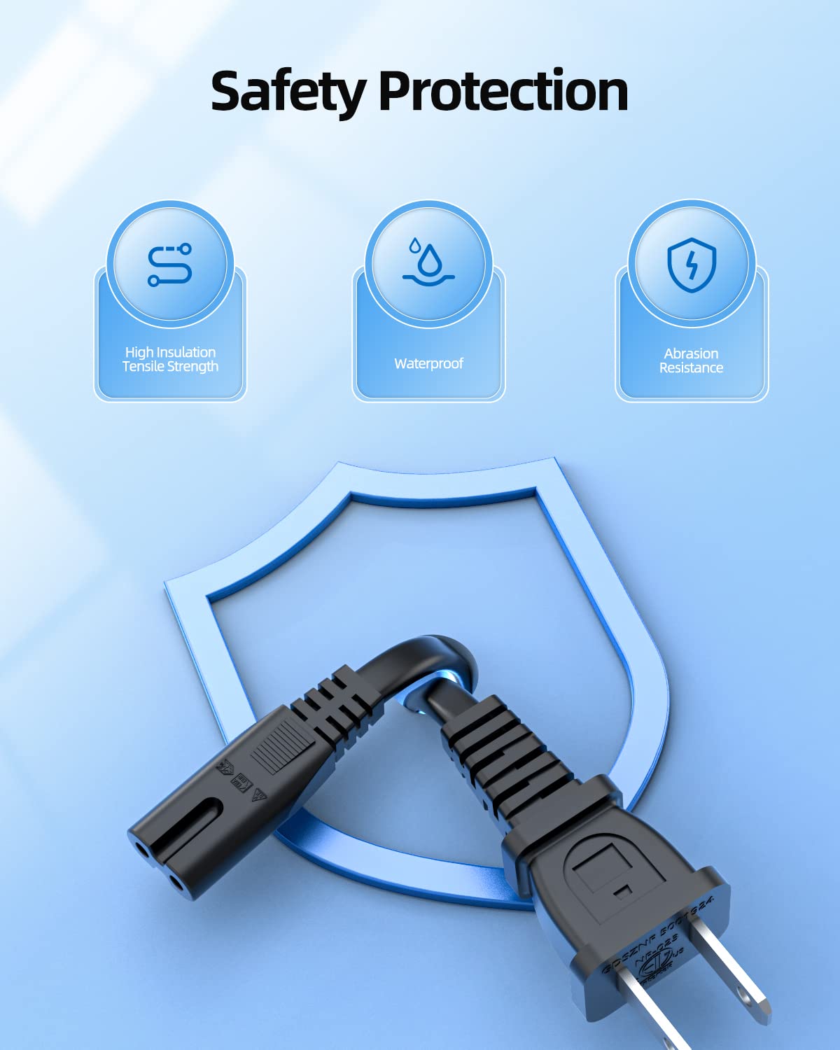 Superer Charger Cord for iRobot Roomba Home Base - Compatible with 600, 800, 900 Series & i Series, 2 Prong, Black, 15.12 x 7