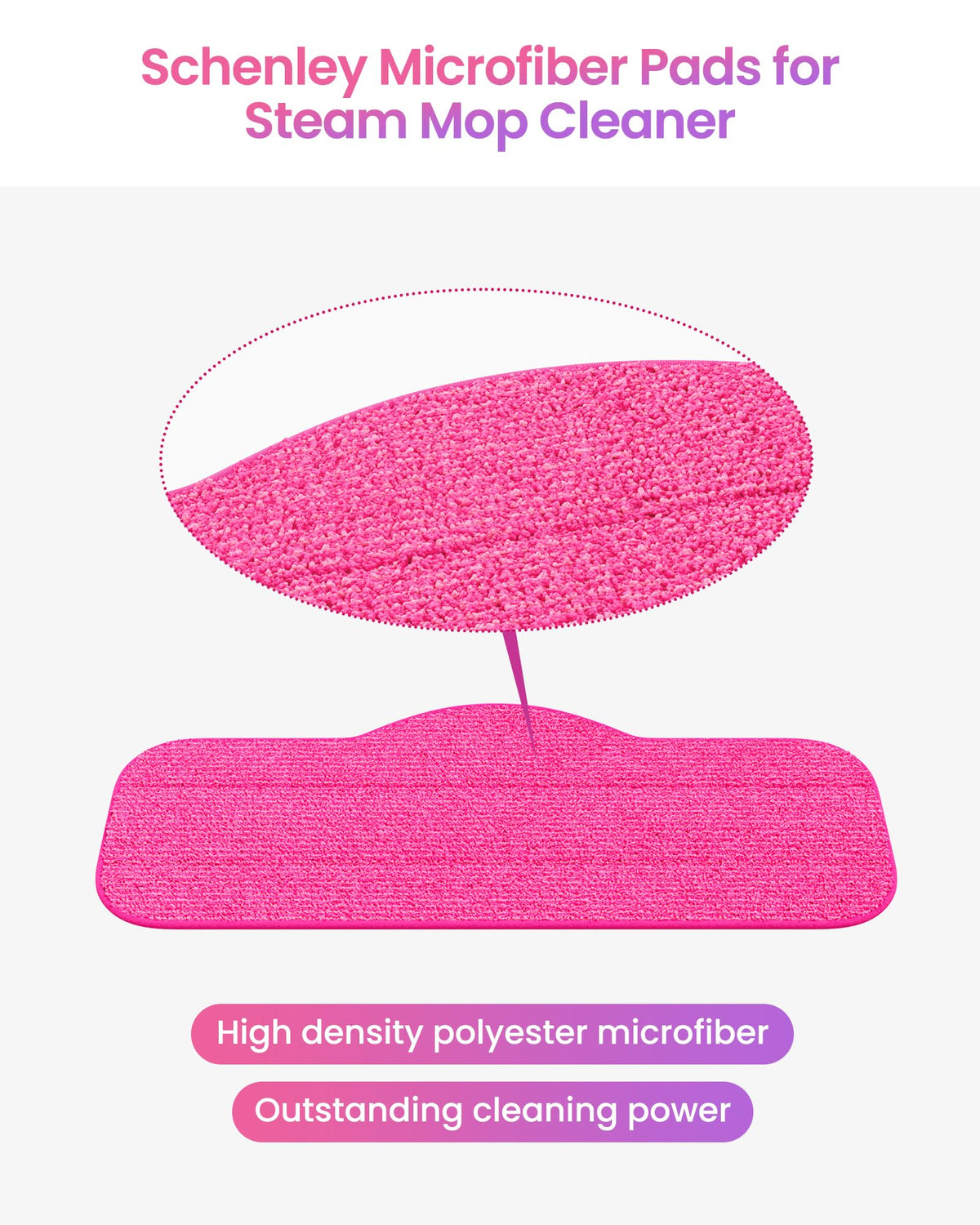 Schenley Hestia Steam Mop Microfiber Pads Are More Breathable And Absorbent Than Regular Polyester Pads. The High-Density Microfiber Has Outstanding Performance In Trapping Dirt, Dust, And Pet Dander, Providing Satisfying Cleaning Results. With Schenley Hestia Steam Mop Cleaner, The Microfiber Pads Allow You To Maintain The Same Cleaning Effect That You Can Get From High-Quality Floor Care Products While Protecting Your Floors From The Damage Caused By Cleaning Chemicals. Apart From Outperforming Cleaning Power, Schenley Microfiber Pads Also Have Excellent Durability. The Pads Have An Extended Of Over 1000 Hours Of Hard Use. Schenley Is Devoted To Delivering Aesthetic Products That Make Our Customers' Lives Easier. The Microfiber Pads Can Be Washed By Machine Using Cold-Water Washing And Tumble Dry, Providing You With A Simple And Graceful Cleaning Experience!
