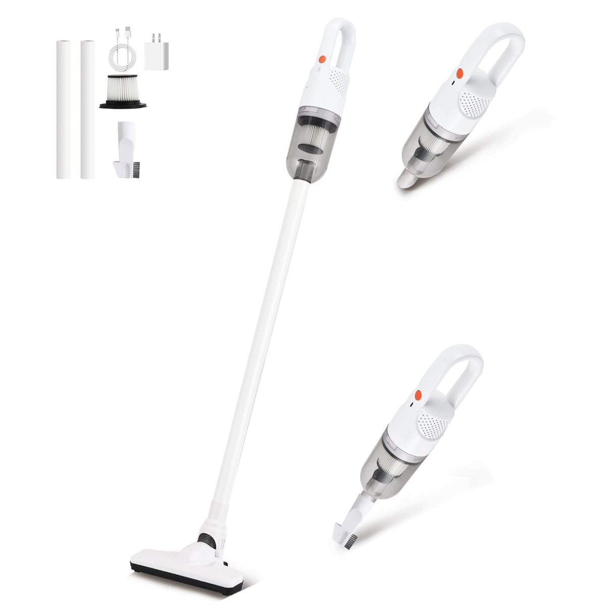 Sippon Cordless Vacuum Cleaner, 2-In-1 Lightweight Stick Vacuum With 100W Powerful Brushless Motor & Led Display, Portable Handheld Vacuum For Home Hard Floor Carpet Pet Hair (White 100W/ With Plug)