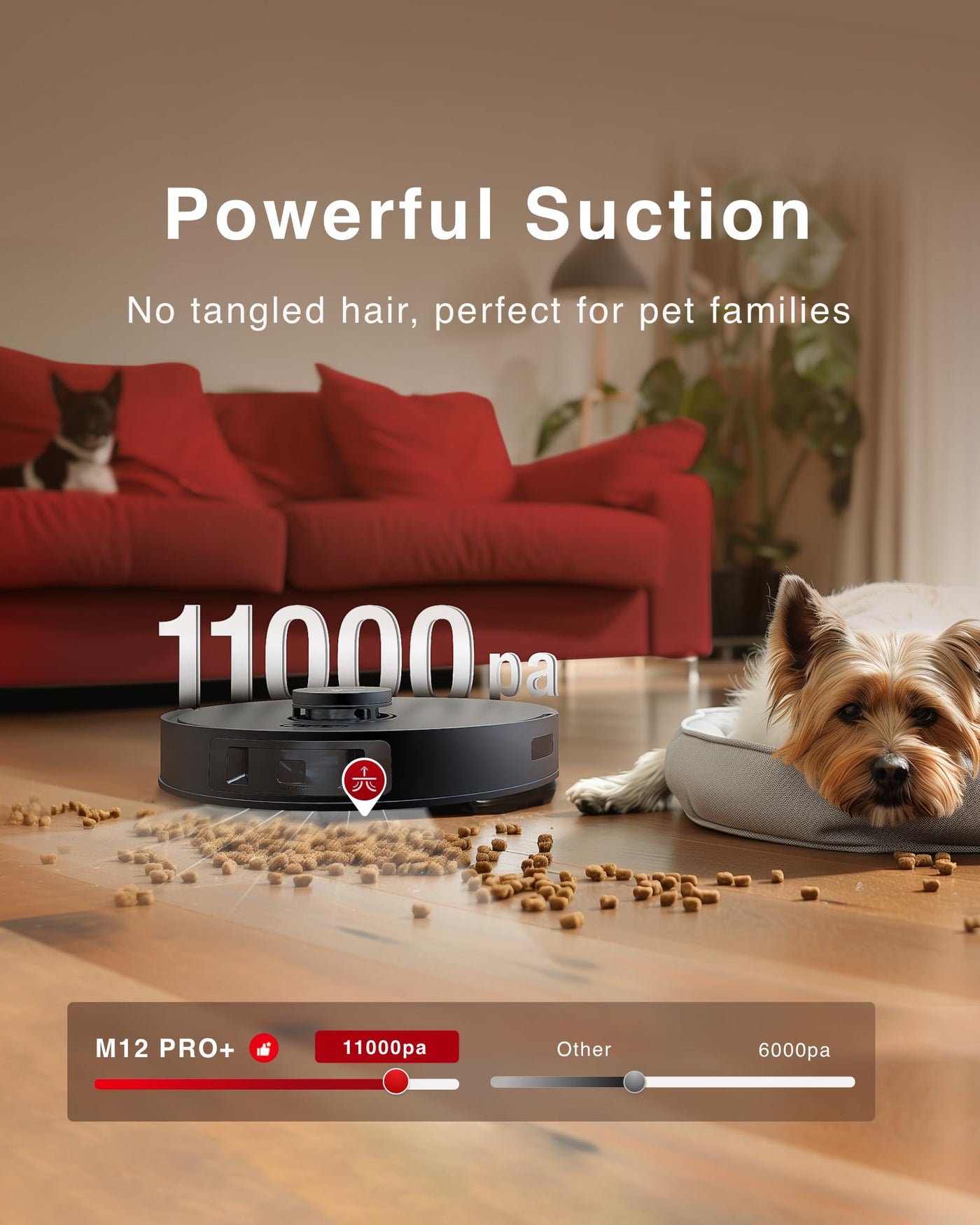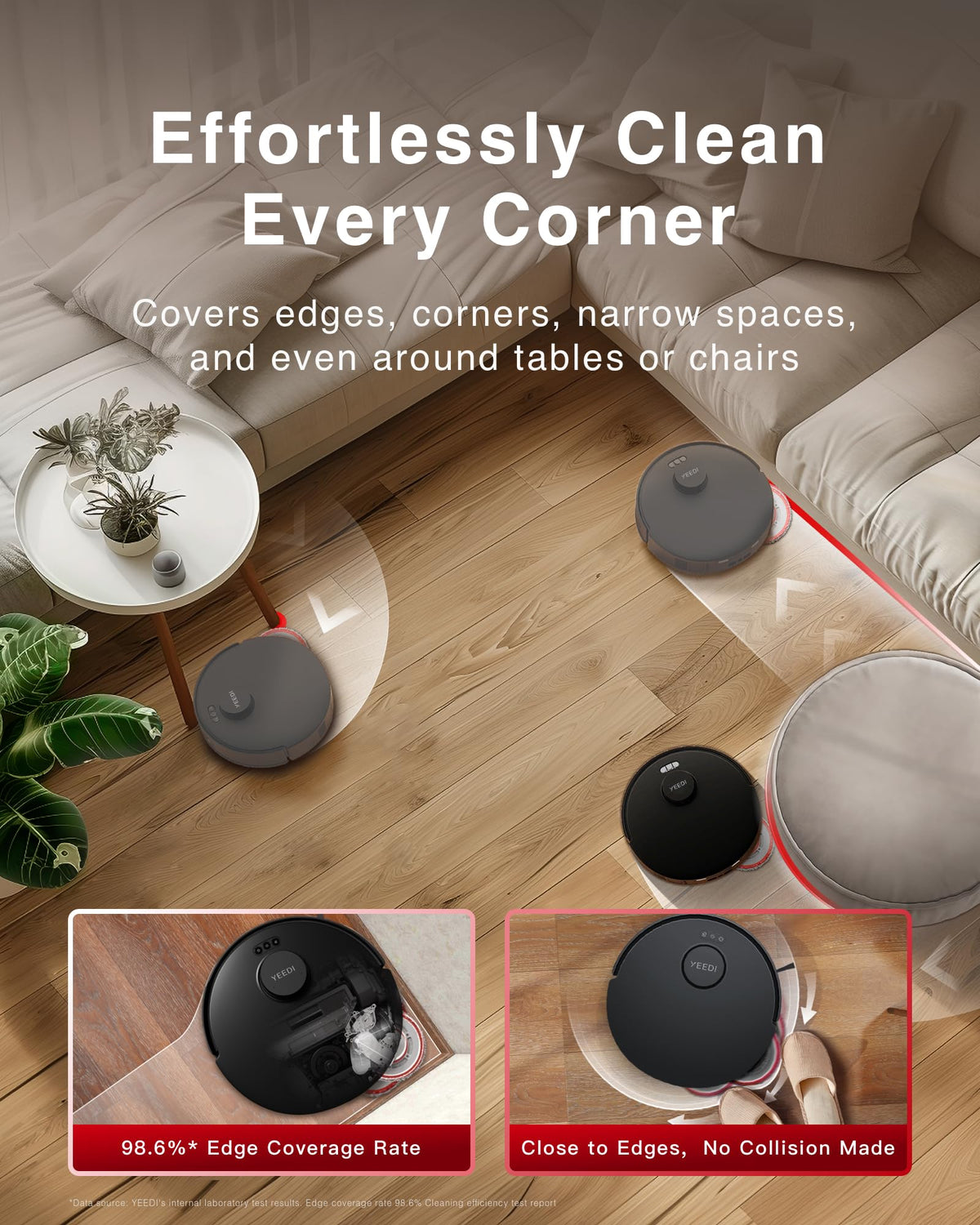 Yeedi M12 Pro+ Robot Vacuum And Mop, 11000Pa Strong Suction, Zerotangle Technology, Truedge Deep Mopping, Auto Mop Washing/Dryin