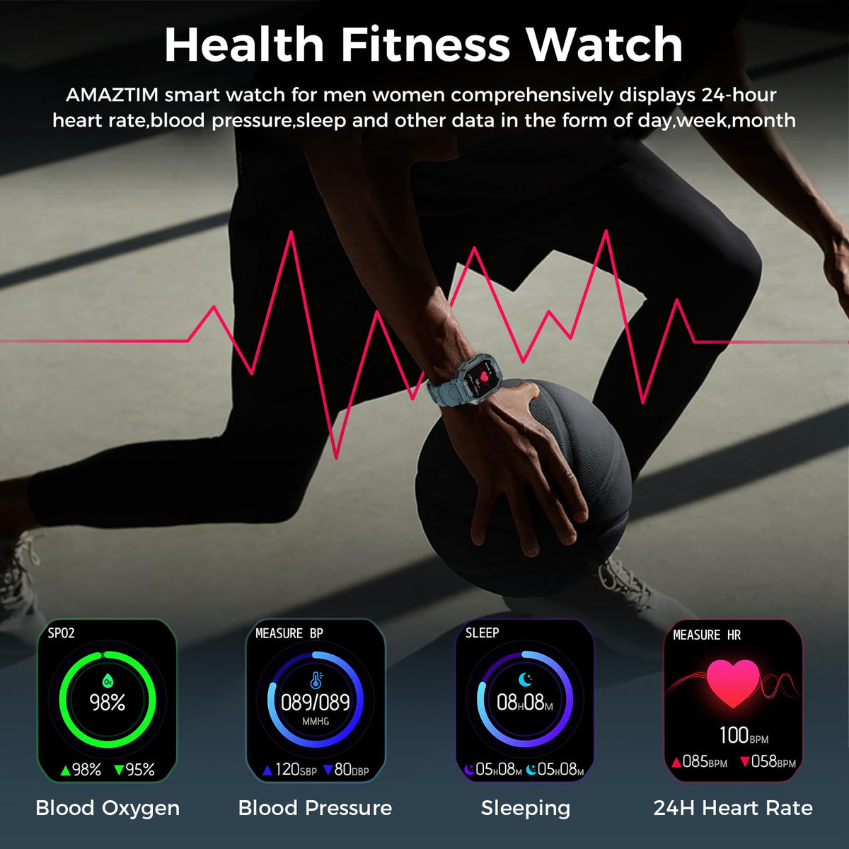 Amaztim Smart Watches For Men,50M Waterproof Rugged Military Grade Bluetooth Call(Answer/Dial Calls),Health Tracker For Android
