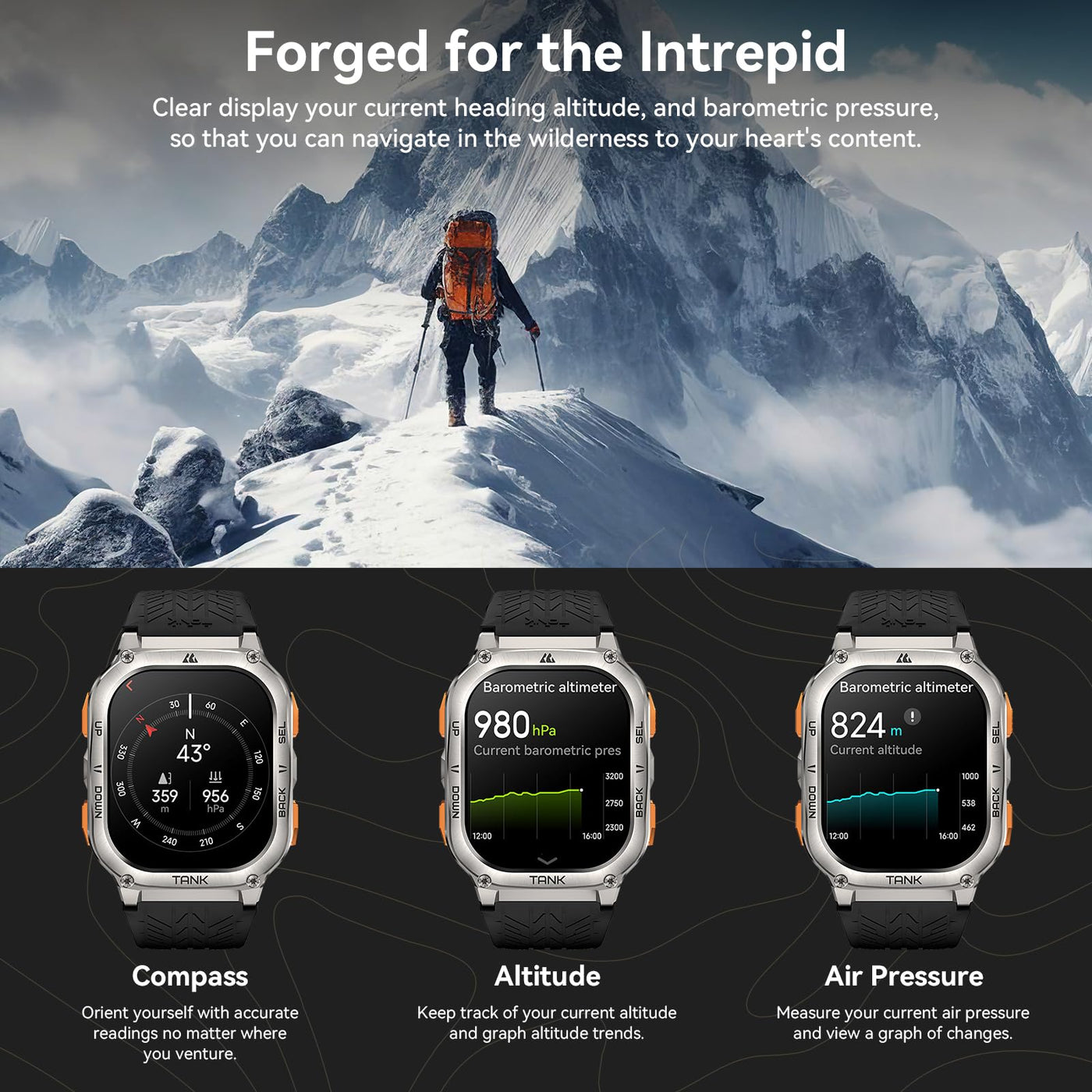 Amaztim Military Smart Watch With Gps, 6 Satellite Positioning/Compass, Stainless Steel Body, 50M Waterproof, 60 Days Extra-Long Battery, Answer/Make Call, 2'' Amoled Screen, Compatible For Android Ios