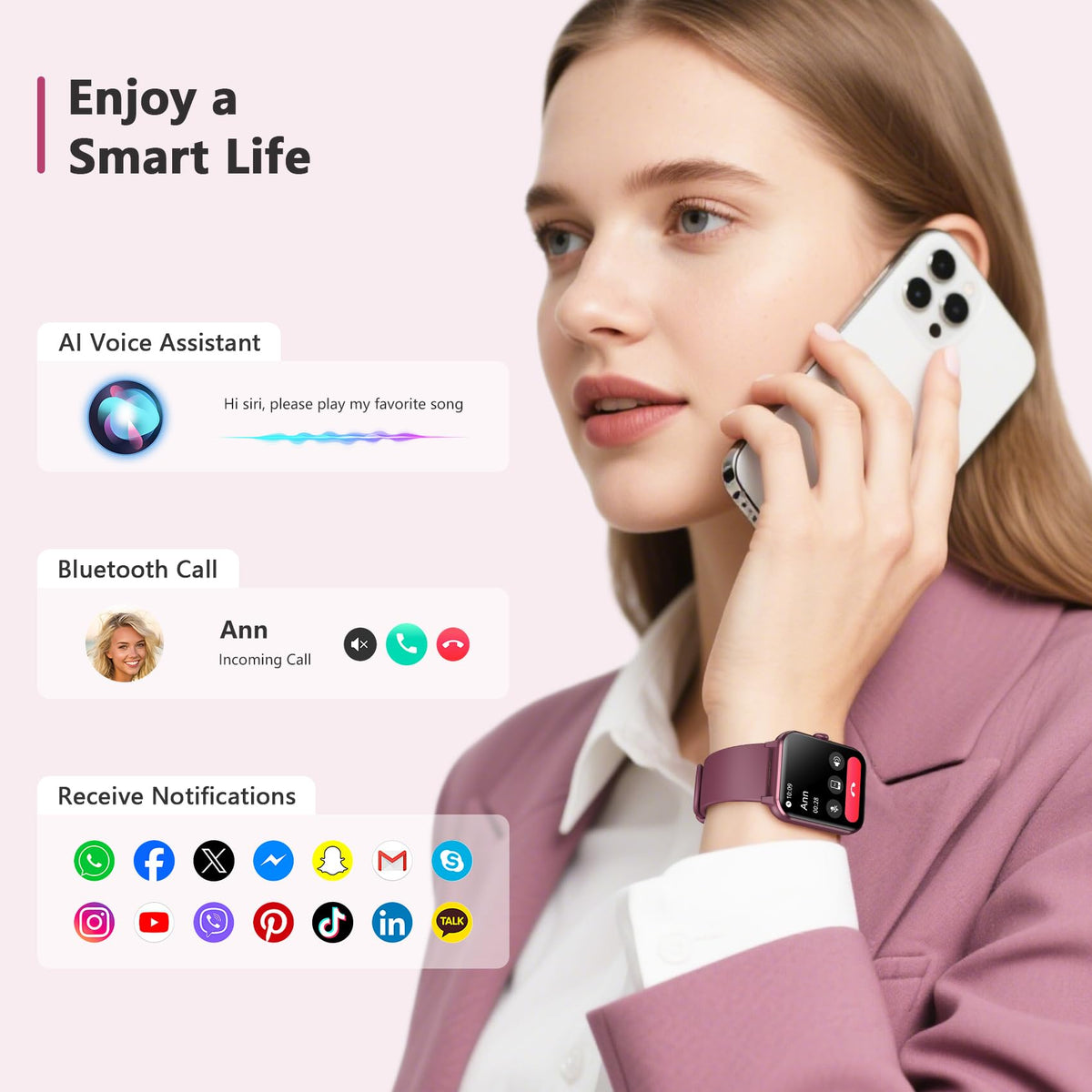 ???Responder/Hacer Llamadas Y Asistente De Voz Ai?Los Relojes Inteligentes De Blackview Vienen Con Altavoces Est Reo Hifi Y Micr Fono Integrados. Una Vez Conectados Por Bluetooth, Puedes Responder O Hacer Llamadas Directamente Desde El Reloj Inteligente. La Aplicaci N ''Da Fit'' Almacena Varios Contactos, Asegurando Que Te Mantengas Conectado Con Familiares Y Amigos En Todo Momento Y Lugar. Recibe Notificaciones En Tiempo Real En El Reloj Inteligente Para Llamadas Entrantes O Mensajes (Whatsapp, Facebook, Instagram, Etc.). Habla Con El Asistente De Voz Ai Para Obtener Ayuda R Pida, Como Pron Stico Del Clima, Hacer Llamadas, Configurar Alarmas, Etc. ???Car Tulas De Reloj Diy Y 2 Correas De Reloj?Los Relojes Inteligentes De Moda Para Hombres Y Mujeres Est N Construidos Con Un Especial Material De Aleaci N De Aluminio, Que Viene Con Dos Tipos De Correas De Reloj: Correas De Nylon Y Correas De Silicona. Puedes Elegir La Imagen De Fondo Para Tu Car Tula De Reloj (Tu Familia, Mascotas U Otras Fotos Que Te Gusten), Descargarla Y Usarla A Trav S De La Aplicaci N ''Da Fit'' En La Pantalla Hd T Ctil Completa De 1.85 Pulgadas. El Sistema Ofrece M S De 100 Car Tulas De Reloj Para Elegir. ???M S De 100 Modos Deportivos?Con M S De 100 Modos Deportivos, Este Rastreador De Fitness Admite Correr, Andar En Bicicleta, Caminar, Escalar, Yoga, Esquiar, F Tbol Y M S. Controla Tus Datos Diarios, Como Pasos, Tiempo, Distancia Y Calor As, Y Se Conecta Al Gps De Tu Tel Fono Para Registrar Todas Tus Rutas De Entrenamiento Y Estado F Sico. Usa La Aplicaci N ''Da Fit'' Para Motivarte A N M S A Completar Tu Plan De Ejercicio. Es Un Dispositivo Resistente Al Agua Ip68 Que Puede Satisfacer Tus Necesidades Diarias. (* Nota: No Es Apto Para Saunas, Agua Caliente, Nataci N O Buceo). ???Monitor De Salud En Tiempo Real?El Reloj De Fitness Para Mujeres Y Hombres Utiliza Sensores Pticos De Alto Rendimiento Para Monitorear La Frecuencia Card Aca Din Mica En Tiempo Real Las 24 Horas Del D A, Los 7 D As De La Semana. Tambi N Puede Rastrear Con Precisi N Tu Sueo Personal Y Detectar La Saturaci N De Ox Geno En La Sangre Y Los Niveles De Estr S Para Ajustar Tu Condici N F Sica De Manera Oportuna. La Aplicaci N Incluso Ofrece Un Informe Detallado De An Lisis De Calidad Del Sueo (Etapas De Sueo Ligero/Profundo/Despierto), Ayud Ndote A Ajustar Tu Estilo De Vida Hacia Uno M S Saludable. (* Nota: Este Reloj No Puede Usarse Como Herramienta De Diagn Stico M Dico). ???M S Herramientas Inteligentes?Adem S De Las Funciones Mencionadas Anteriormente, Este Reloj Inteligente Tambi N Ofrece Otras Tiles Funciones Diarias Como Notificaciones Inteligentes, Control De M Sica, Control De C Mara, Juegos Casuales, Pron Stico Del Clima, Recordatorios Ocasionales, Reloj Despertador, Cron Metro, Temporizador, Etc. Compatible Con La Mayor A De Los Smartphones Con Sistema Operativo Android 6.0 E Ios 9.0 O Superior, Viene Con Una Bater A De Gran Capacidad Integrada De 350Mah, Que Garantiza Hasta 7 D As De Uso Y Aproximadamente 30 D As En Espera Con Solo 2 Horas De Carga.