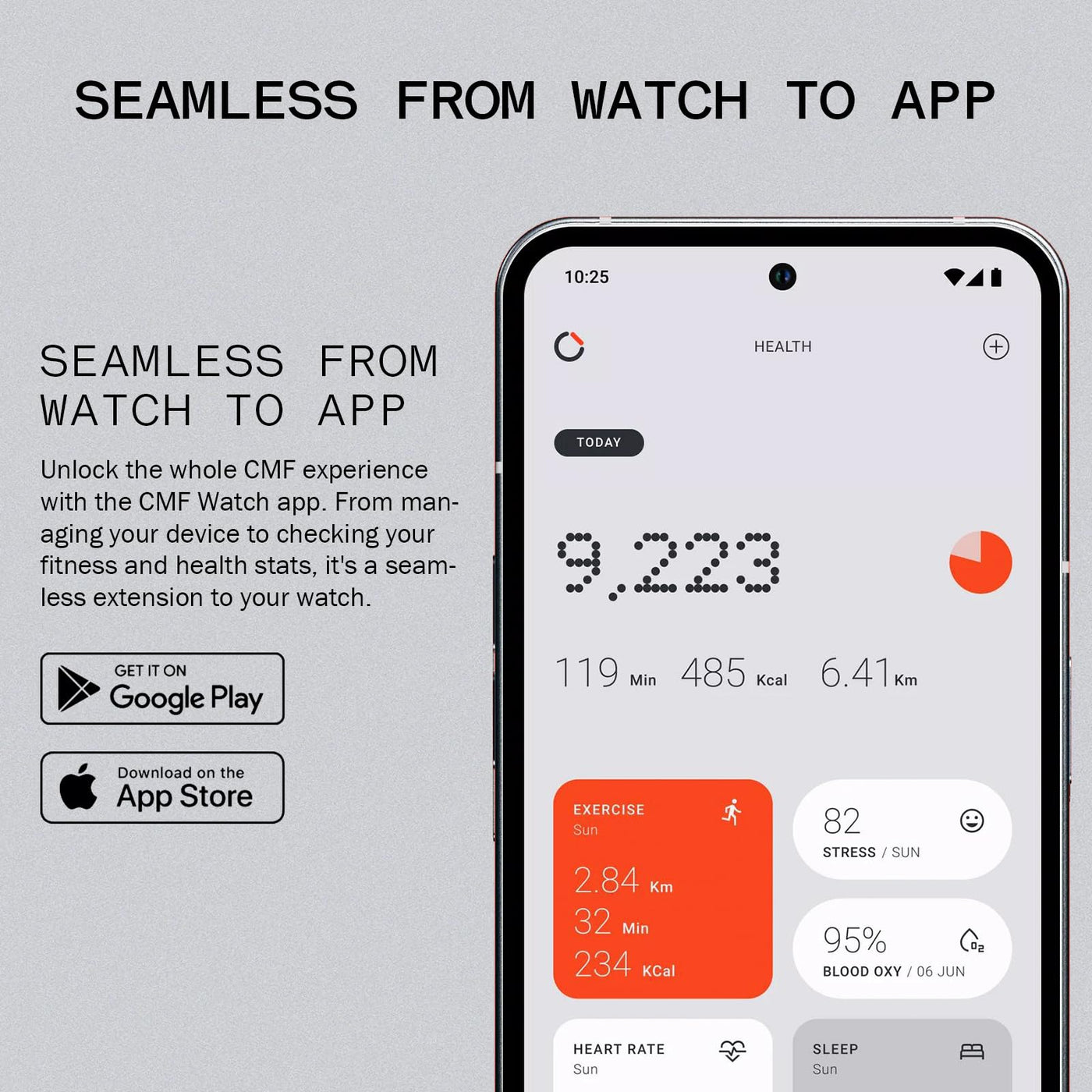 Cmf 2025 Upgrade Watch Pro Smart Watch, Fitness Tracker,1.96 '' Amoled Display,Bluetooth Calls With Ai Noise Reduction,13 Days L