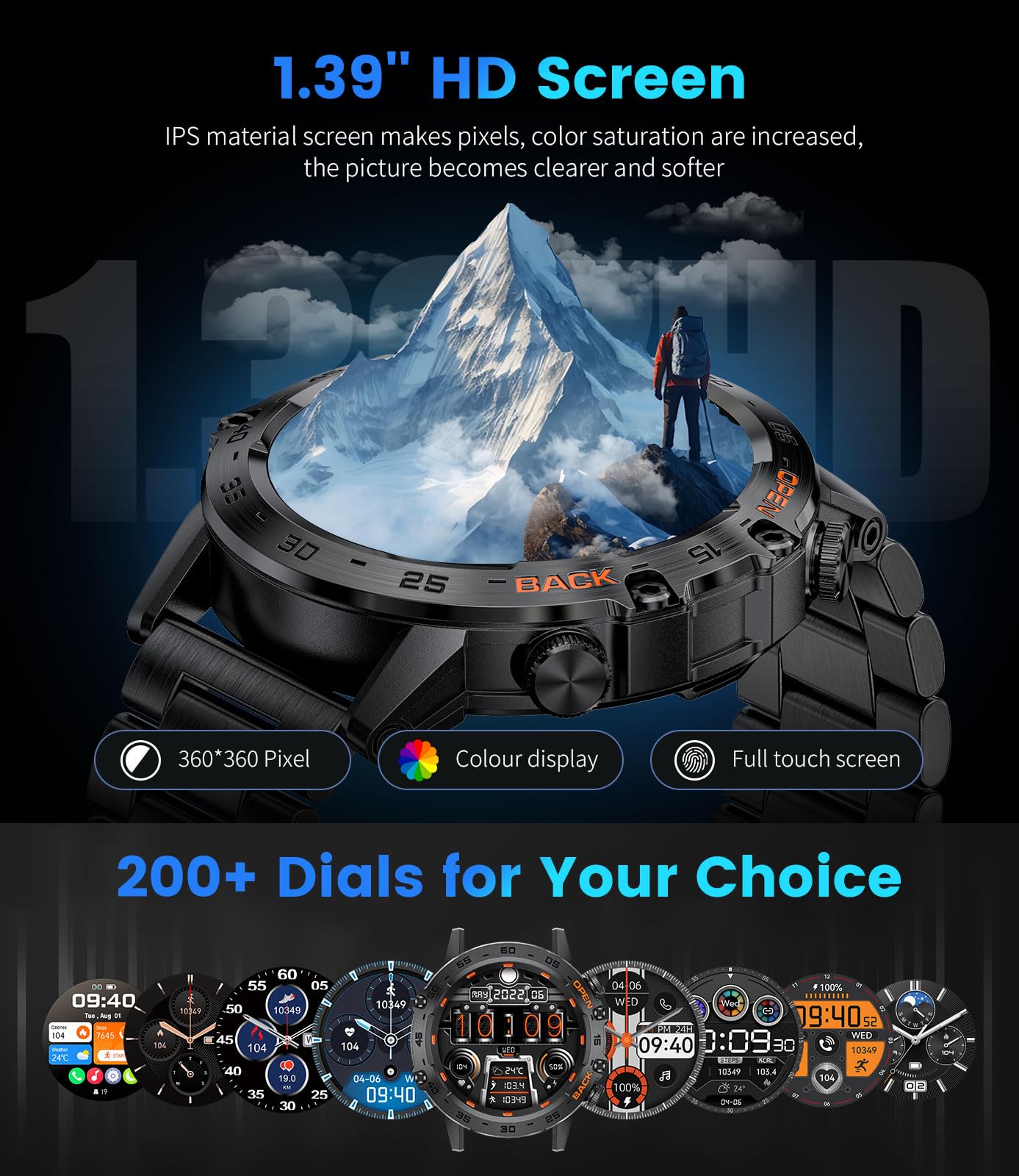 This Military Men'S Smartwatch Has A Cool And Rugged Appearance, Designed In Full Accordance With Military Standards, Boasting Excellent Resistance To Heat, Cold, And Moisture. The 400Mah High-Capacity Battery Provides Long-Lasting Power Support, Bidding Farewell To The Anxiety Of Battery Life.Moreover, This Smartwatch Not Only Supports Bluetooth Connectivity But Also Offers Features Such As Call Functions, Contact Synchronization, Split-Screen Functionality, And Password Lock For Secure Communication, Making Your Communication More Convenient And Reliable. Furthermore, It Provides Numerous Practical Functions, Including Voice Assistants, Message Notifications, Weather Forecasts, Camera Control, Music Control, Various Sports Modes, Stopwatch, Phone/Watch Finder, Sleep Monitoring, Heart Rate Monitoring, Blood Pressure And Blood Oxygen Monitoring, Alarms, Sedentary Reminders, And Even Customizable Watch Faces, Enhancing The Convenience And Efficiency Of Your Life.This Smartwatch Is A Powerful, Stylish, And Practical Device, Catering To The Needs Of Not Only Sports Enthusiasts But Also Busy Professionals And Fashion Enthusiasts, Providing Them With Comprehensive Support And Enjoyment. Offering This Special Present Will Showcase Your Care And Thoughtfulness, Making Their Lives Even More Exciting!