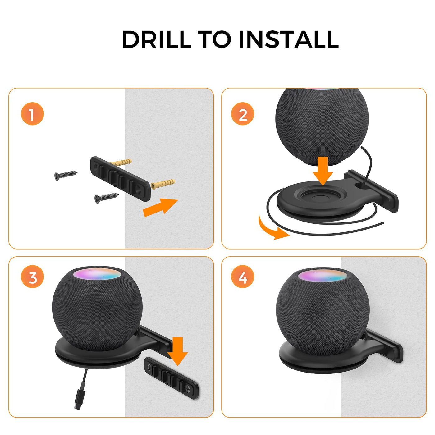 Compatibility: Especially Designed For Homepod Mini, Compact But Sturdy, Without Sound Interference | Cord Management: Allows You To Wrap The Excess Cord Inside Of The Mount, Saving Space And Provides A Much Cleaner Look | Drill To Install: Each Package Comes With Screws And Anchor. More Stable And Safer For Your Apple Homepod Mini | Wide Application: The Homepod Mini Wall Mount Can Be Applied In The Bedroom, Bathroom, Kitchen, Office And Garages, Etc | In The Box: Each Package Comes With Screws And Anchor. Please Be Noted The Homepod Mini Is Not Included