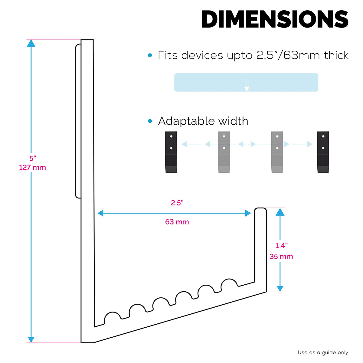 Adjustable Wall Mount:, Suitable For Any Device That Has A Max Width Of 2.5'' Inch And Max Weight Of 4Lb. No Real Constraints On The Length And Height Of The Device.&Nbsp; Our Hanger Is Super Easy To Install As It Simply Sticks Onto The Underside Of The Desk With The Included Powerful 3M Vhb Tape, Or Use The Included Screws For A Stronger And More Secure Fit. Use Our Holder To Organize Your Devices And Cables Neatly And Out Of The Way. Suitable For Almost Any Device That Is Less Than 2.5'' Wide, This Includes Cable Boxes, Modems, Wifi Routers, Nintendo Switch, Laptop Holder, Smart Tv Boxes, Streaming Devices, Files, Folders &Amp; More!