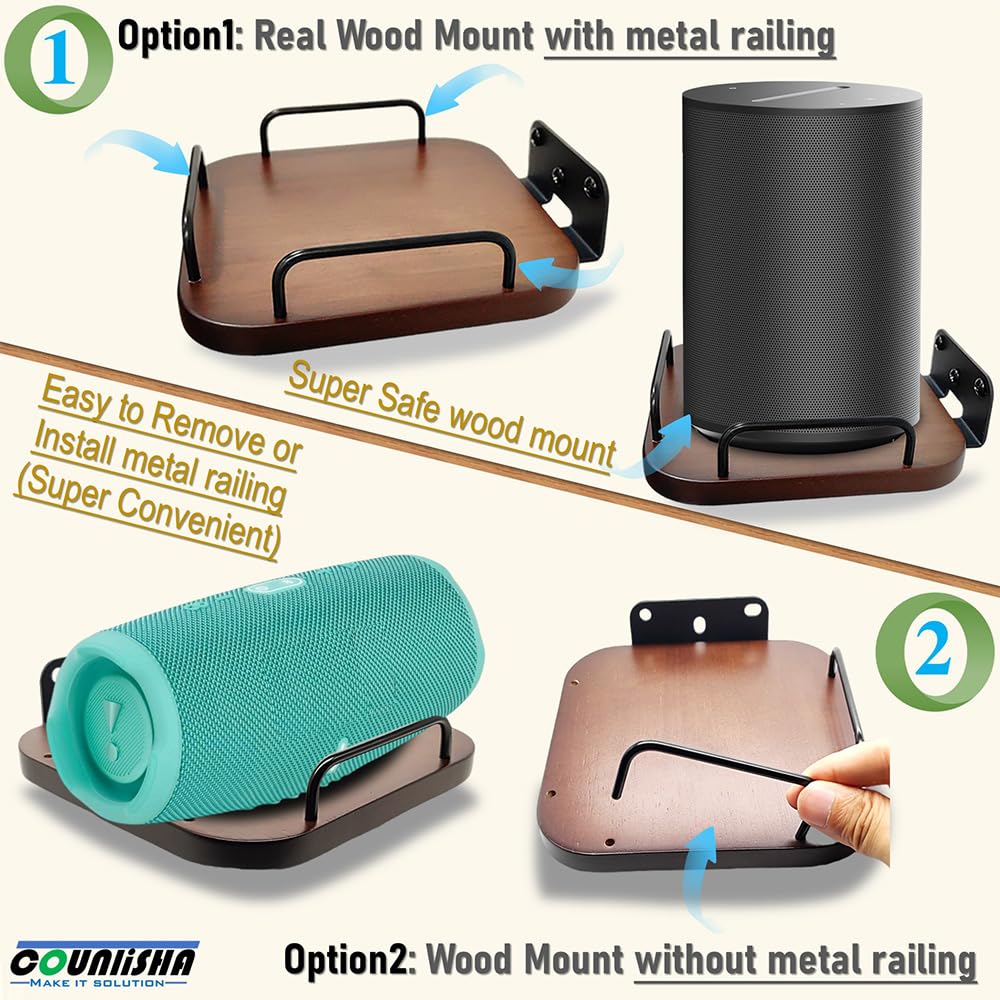 Counlisha Universal Speaker Wall Mount For Roku Speaker,Homepod 2Nd,Adjustable Real Wood Wall Bracket Holder Shelves For Homepod Mini,Bose,Jbl,Sonos,Sony,Kef (Walnut)