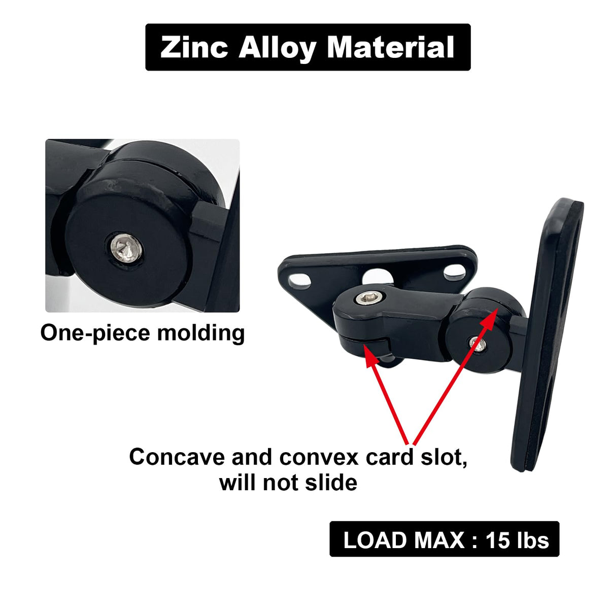 Q: What material is the speaker wall mount made of?A: The DAGCUXIN DX-151 Speaker Wall Mount is constructed from heavy-duty die-cast aluminum, providing strong support and stability.