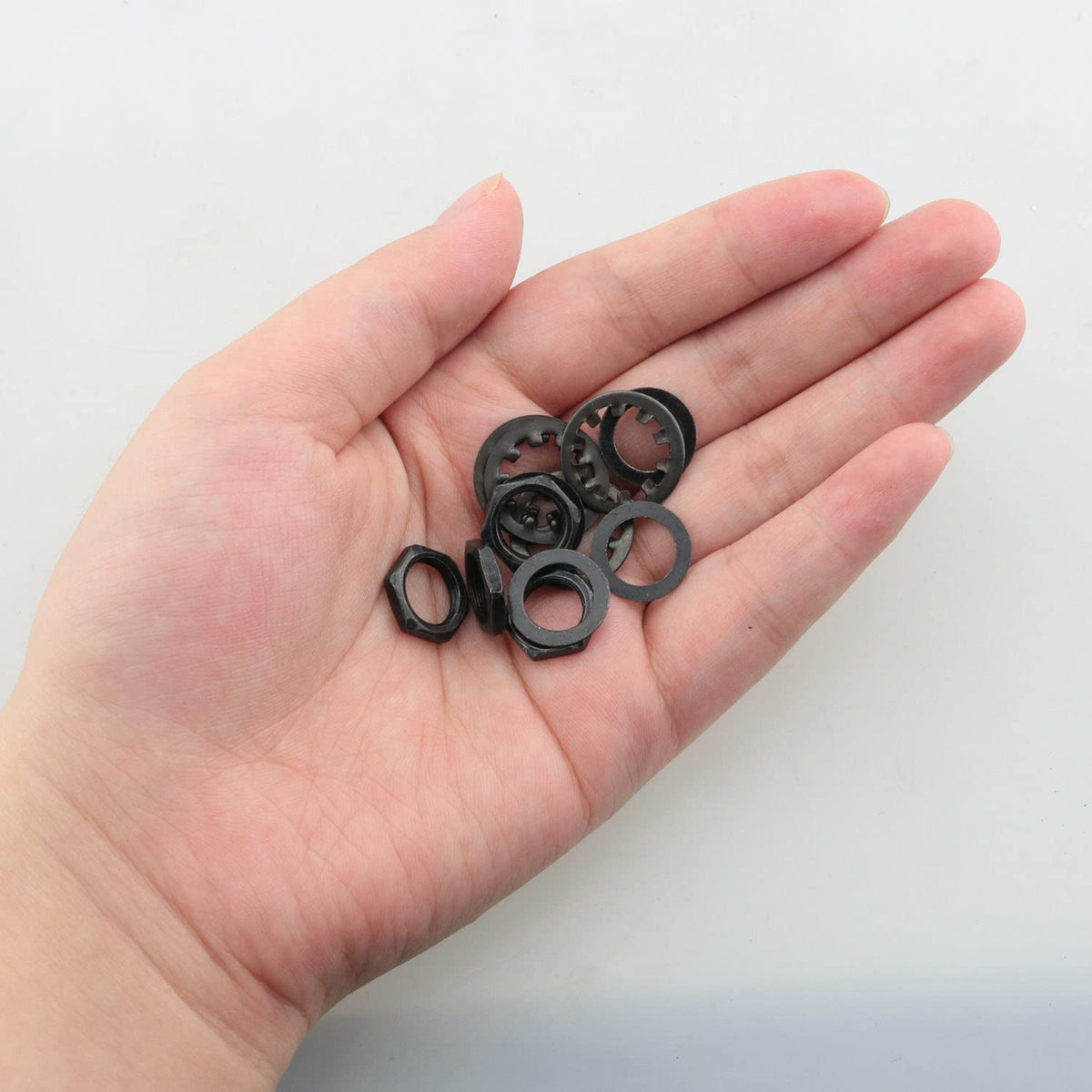 Dgbrsm 4 Sets 3/8'' Guitar Nut Flat Washer And Locking Washer Metal Hex Nut For Us Cts Pots And Jacks, Black